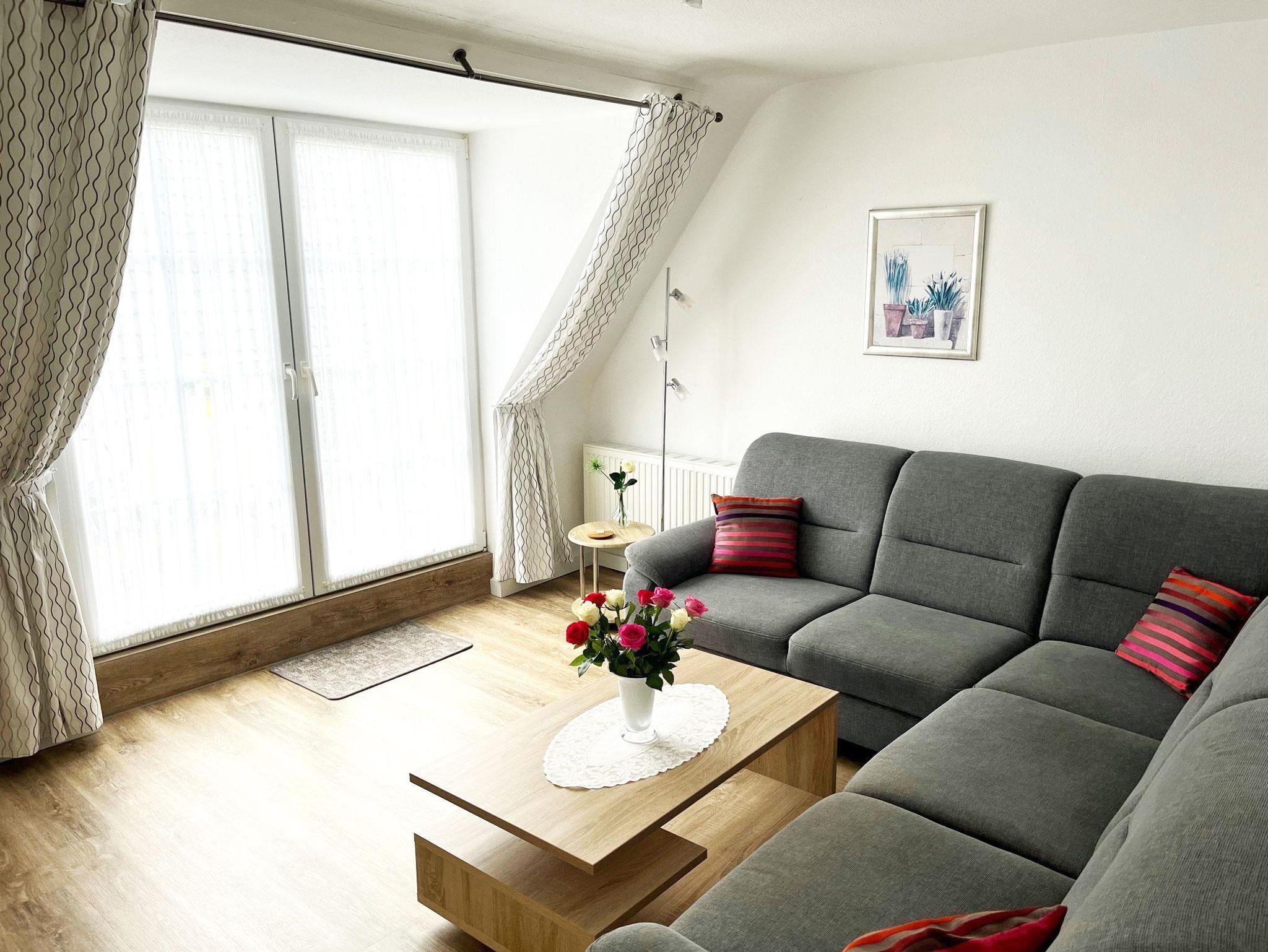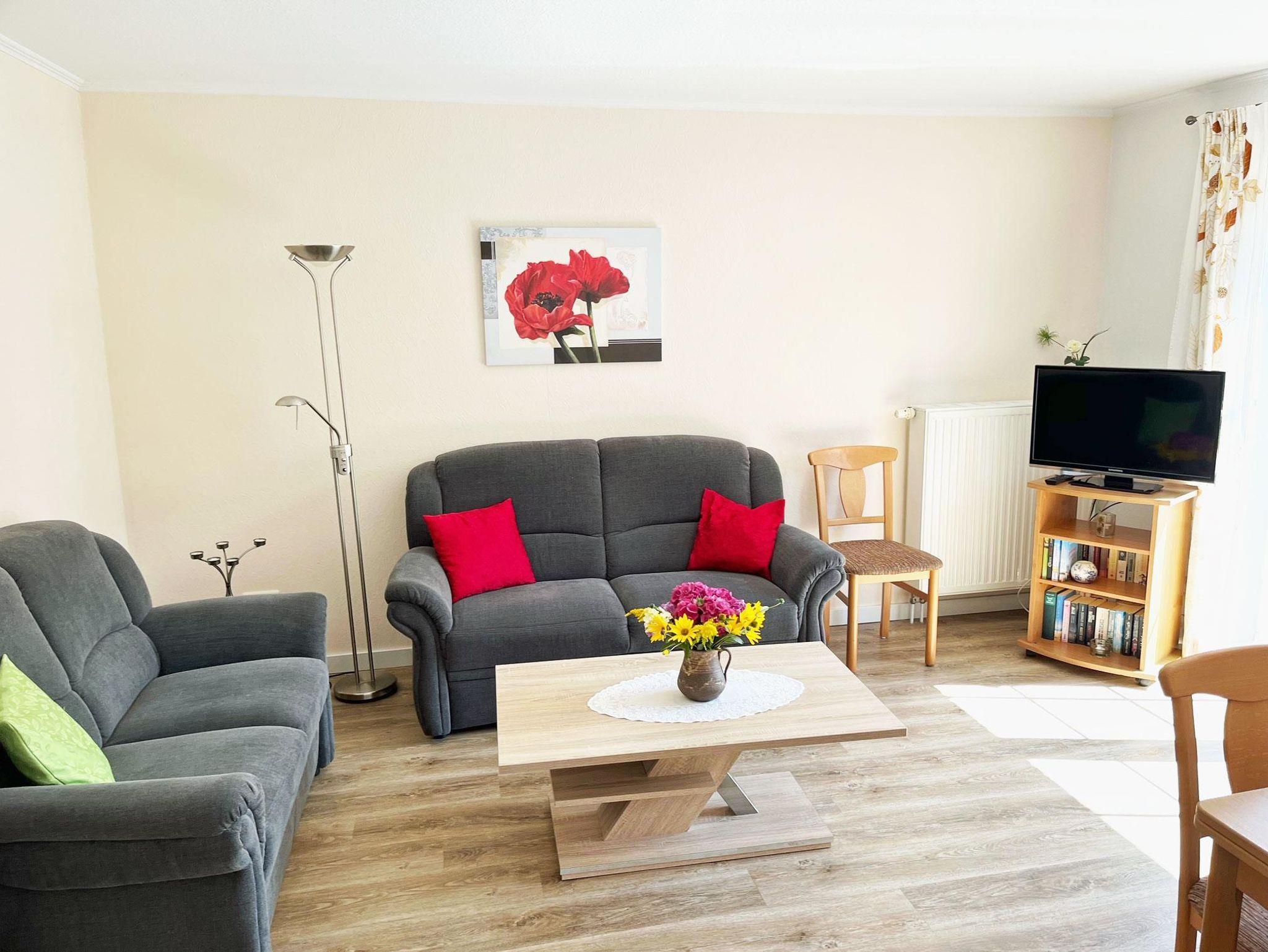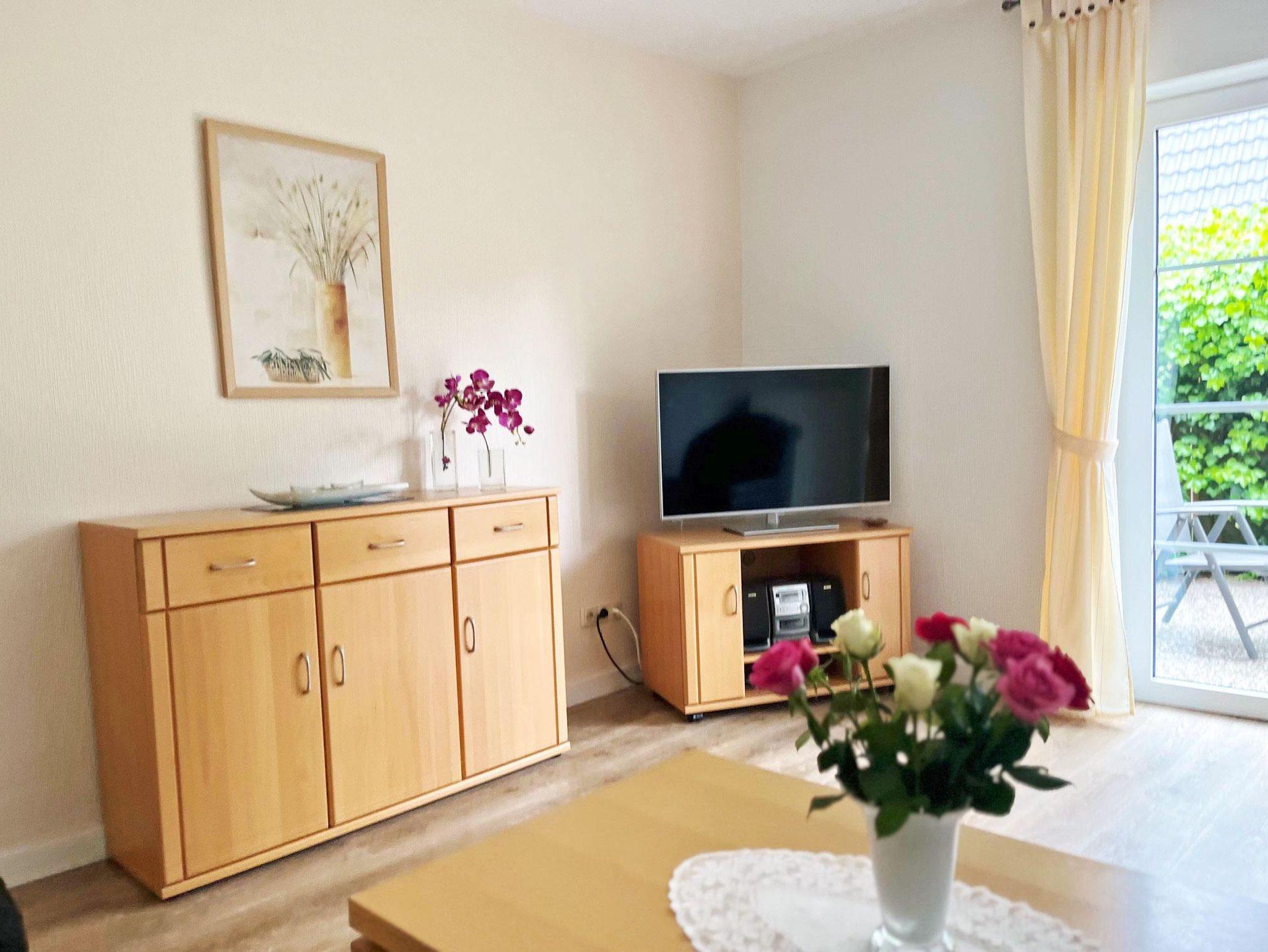 Die Ferienwohnung (ca. 68 qm) hat eine Terrrasse zur Ostseite, Elternschlafzimmer mit Doppelbett und ist eine Nichtraucherwohnung.