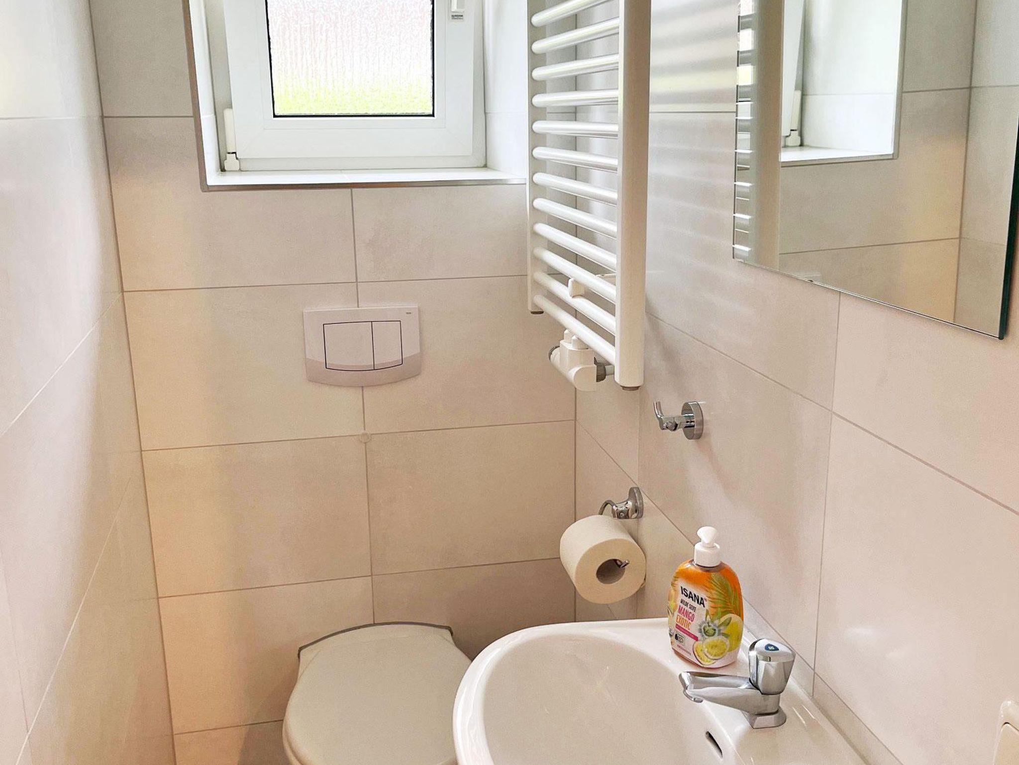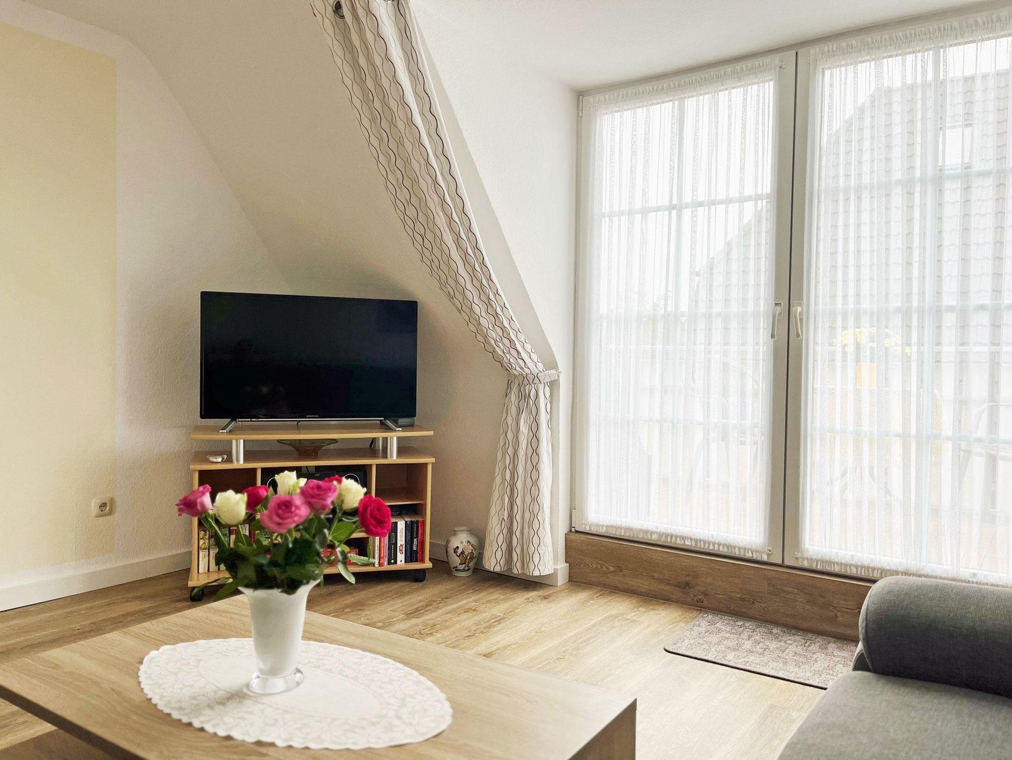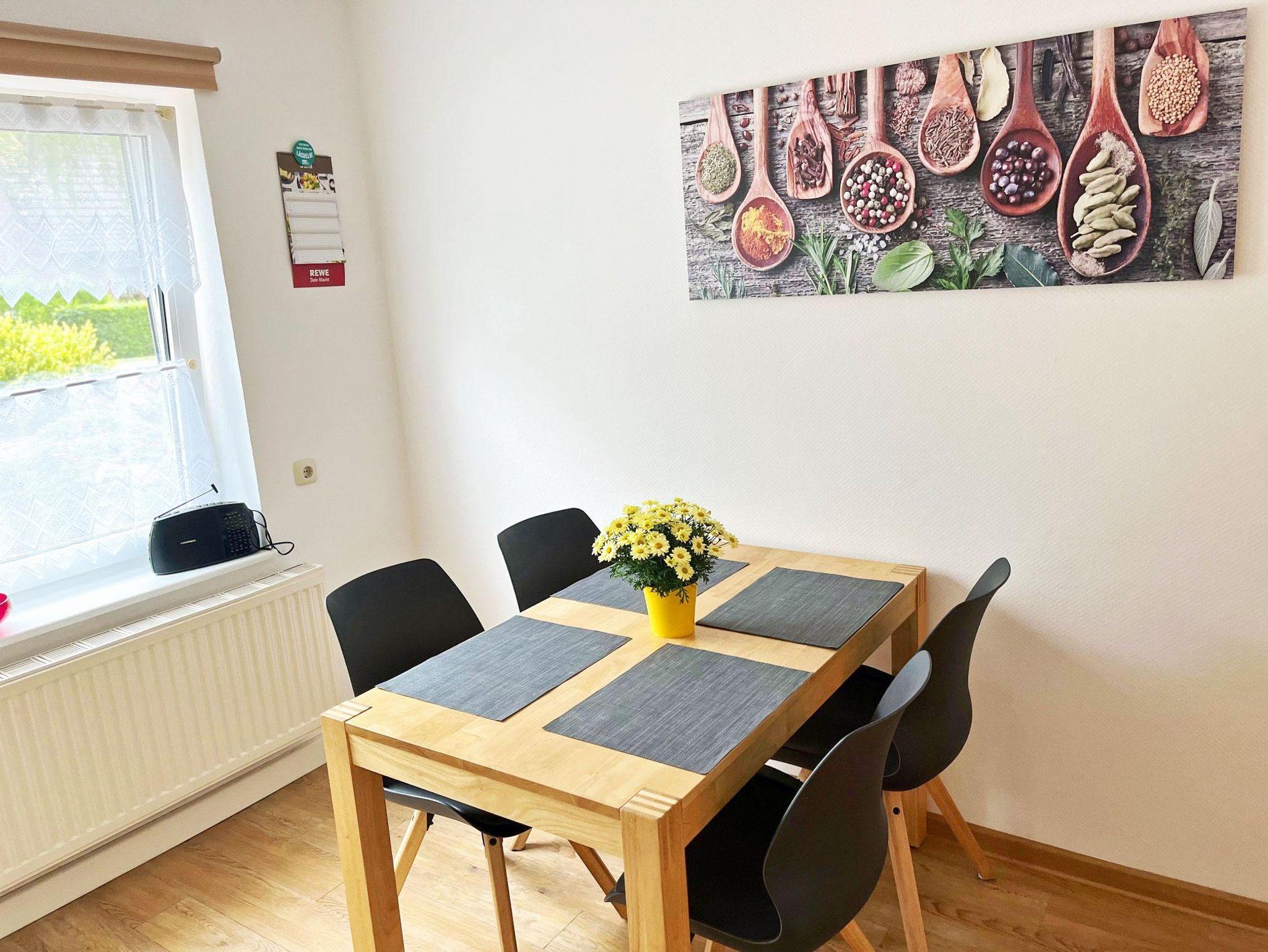 Die Ferienwohnung (ca. 68 qm) hat eine Terrrasse zur Ostseite, Elternschlafzimmer mit Doppelbett und ist eine Nichtraucherwohnung.