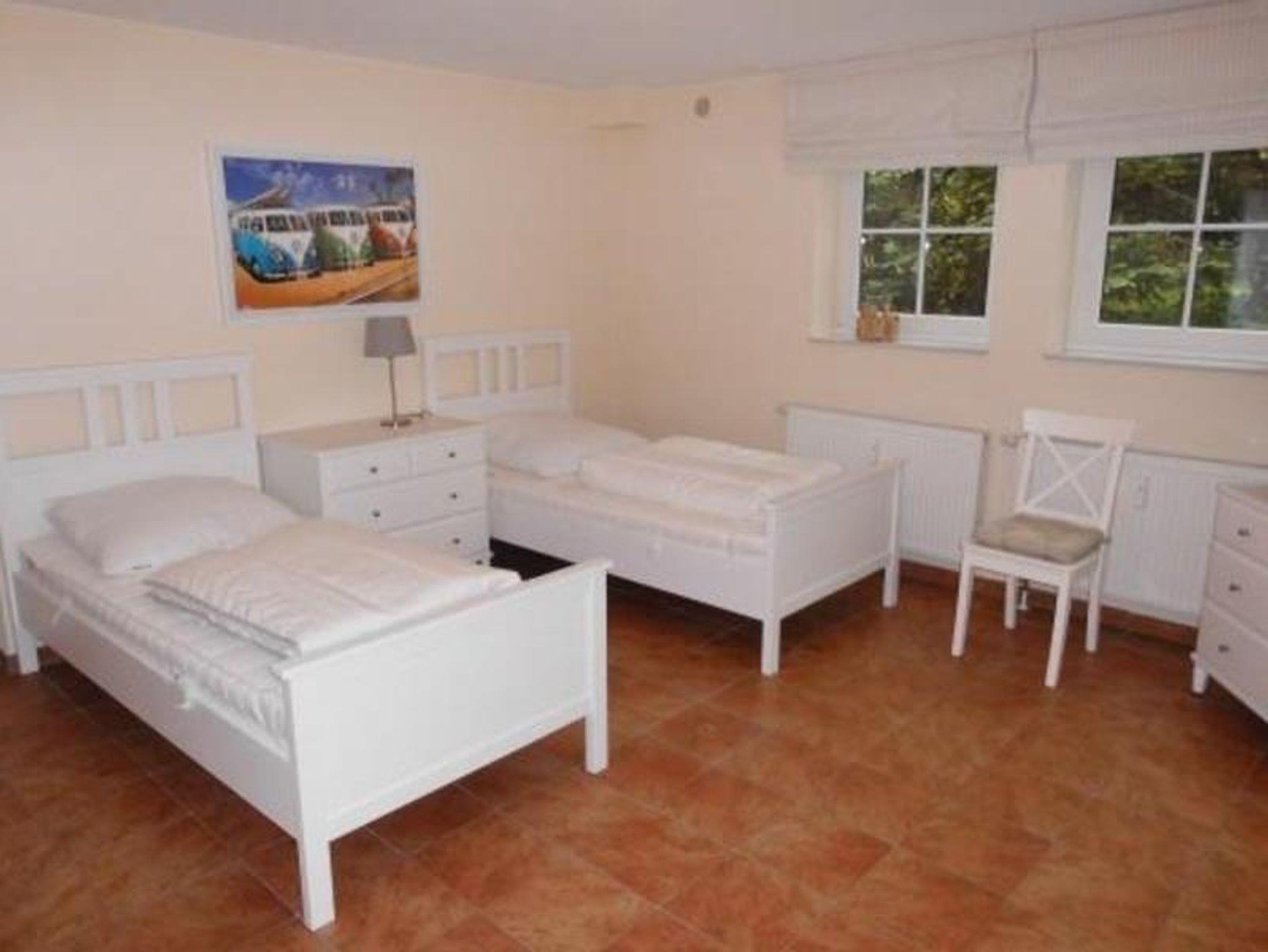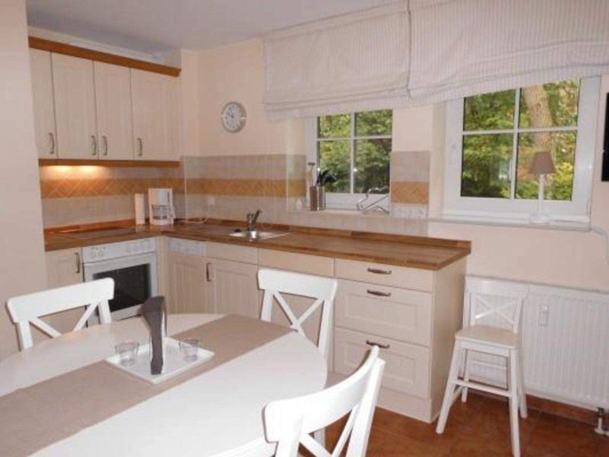 Individuell gestaltetes Haus am ausgedehnten Kurwald. Wenige Schritte zum Badzentrum mit allen Kureinrichtungen, Dünen-Therme und Seebrücke zum Sandstrand. Die Wohnungen sind komplett gefliest und geschmackvoll und komfortabel ausgestattet. Kabel-TV, Stereoanlage. Abstellplatz für Fahrräder vorhanden.Hochparterre, App. Nr. 2, ca. 66qm, ist über 2 Ebenen angeordnet. Wohnraum mit Couchgarnitur, komplett ausgest. Küche (Geschirrspüler, Backofen, Ceranfeld ), Badezimmer mit Dusche. 1 Schlafraum mit Doppelbett, 1 Schlafraum mit 2 getrennten Betten im Souterrain. Möblierter Balkon und Terrasse, Garage. Internetanschluss.