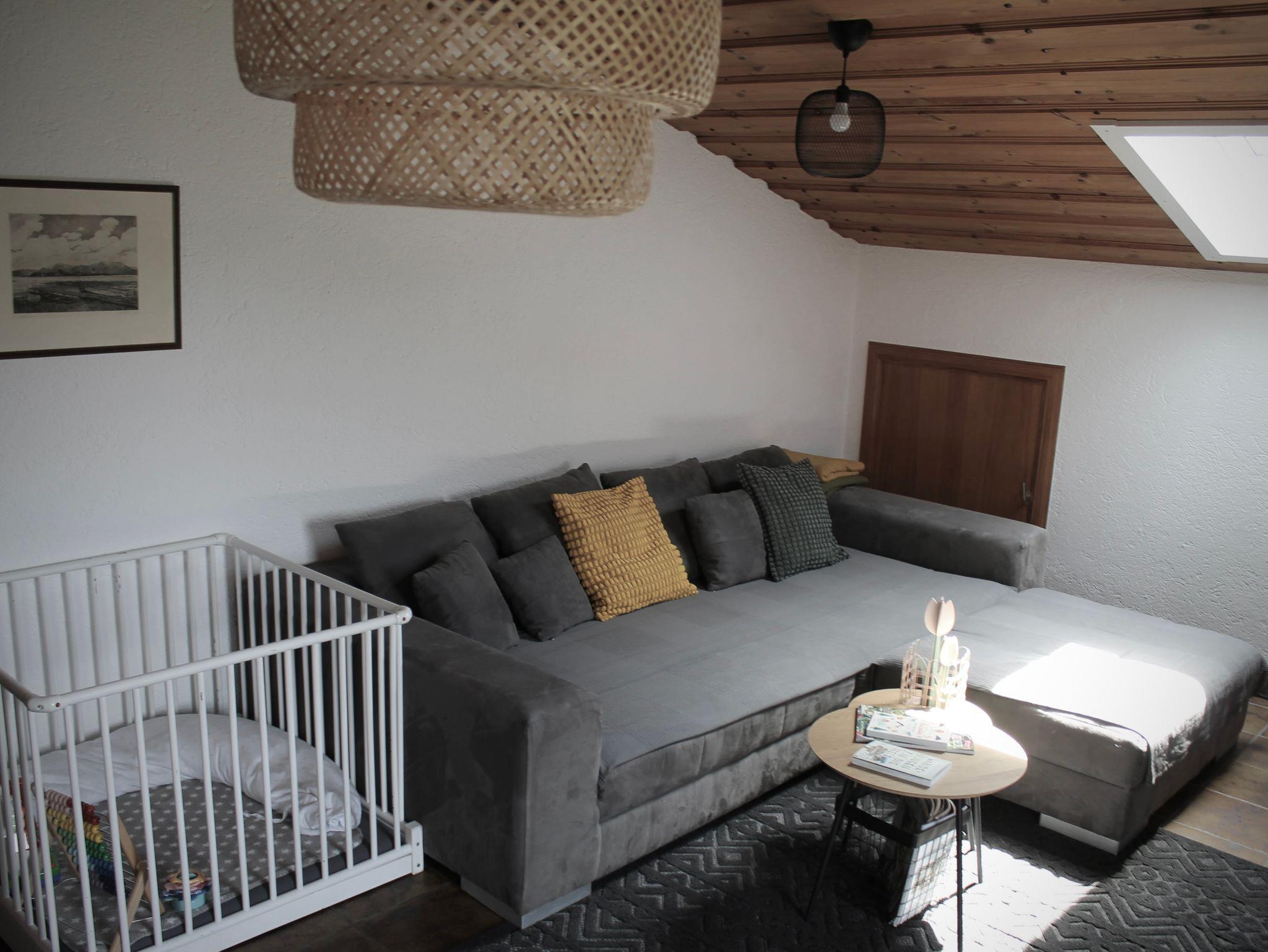 Im Wohnzimmer erwarten Sie eine große, gemütliche Couch (Schlafcouch) und ein bequemer Lesesessel. Familienspiele stehen Ihnen ebenfalls zur Verfügung.