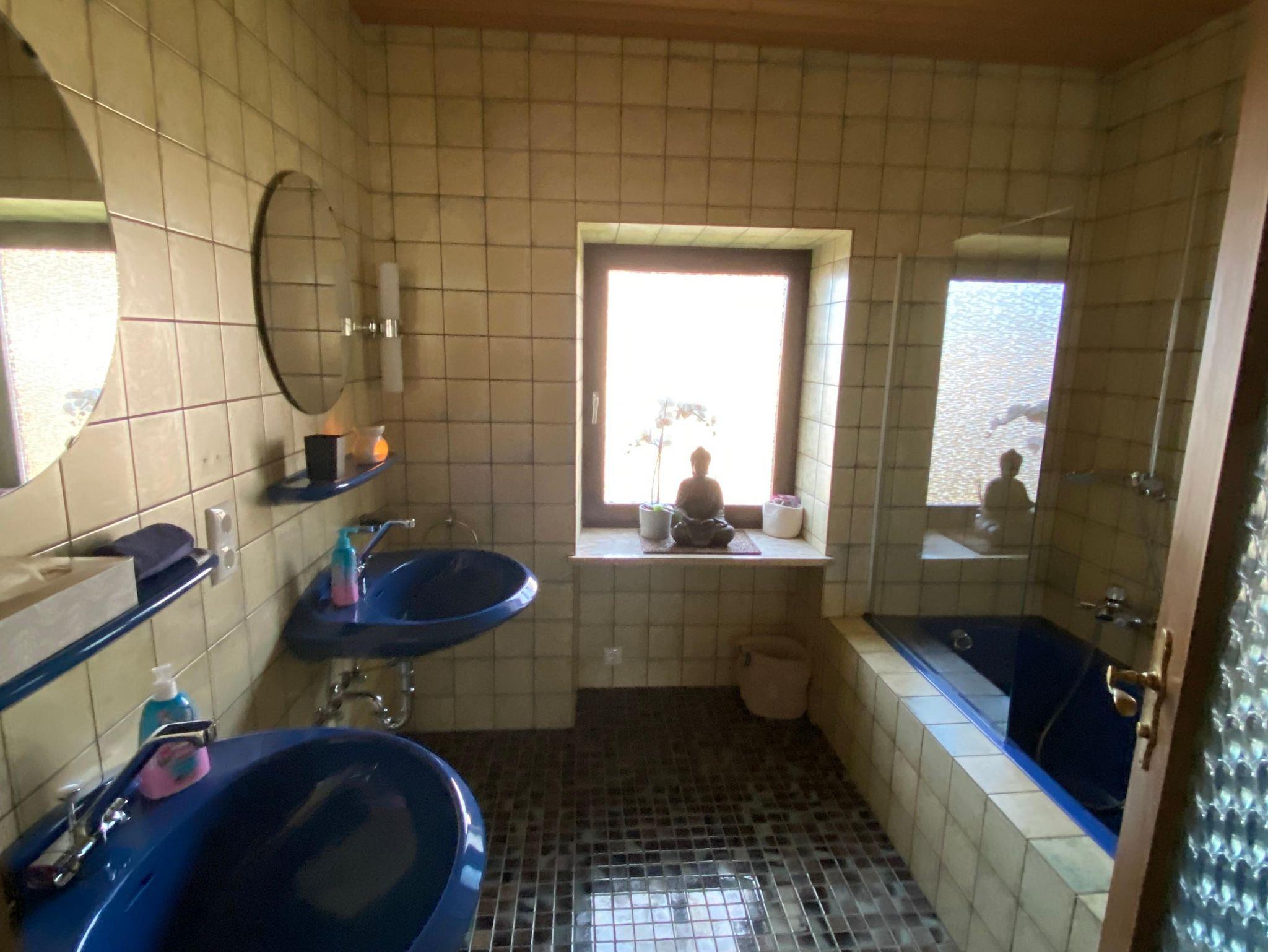 Das Badezimmer ist voll ausgestattet mit frischen Handtüchern und einem Fön. Ein Handtuchwechsel ist jederzeit möglich. Das WC befindet sich separat.
