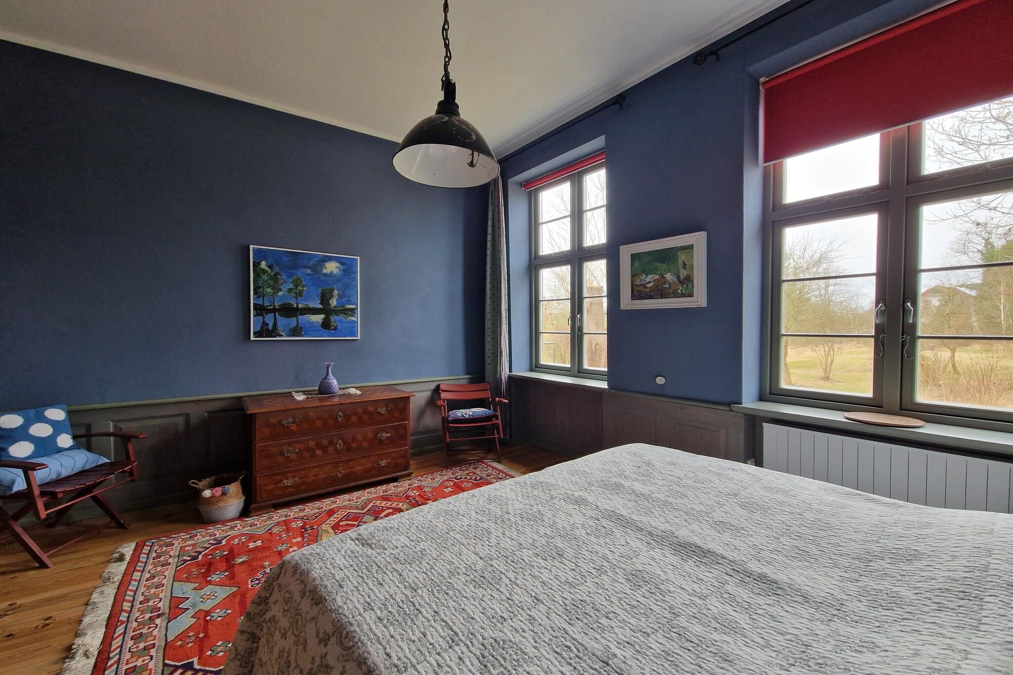 Willkommen im Ferienhaus Steffenshagen. Verbringen Sie Ihren Urlaub in einem typischen Haus aus dem frühen 19. Jahrhundert. Dieses Haus mit angrenzendem Innenhof, Park und Obstgarten wurde ursprünglich als Pfarrhaus genutzt. Nach langem Dornröschenschlaf und anschließender Renovierung erstrahlt es nun in seinem ursprünglichen Charakter. Dieses sehr große, schöne Ferienhaus besteht aus einer Einzimmerwohnung, einer Vierzimmerwohnung und zwei Gästezimmern. Es ist ideal für eine große Familie oder eine Gruppe von Freunden. Durch eine historische Eingangstür gelangt man in die geräumige zentrale Diele mit altem Muschelkalkboden. Von dort aus gelangen Sie in die umliegenden Räume. Die beiden Ferienwohnungen verfügen über folgende Aufteilung: Einzimmerwohnung: ein gemütliches Wohn-/Schlafzimmer, eine separate Küche und ein modernes Badezimmer mit Dusche und WC. Vierzimmer-Ferienwohnung: ein gemütliches Wohnzimmer mit angrenzender Stube, ein separates Schlafzimmer, ein stimmungsvolles Esszimmer mit Kamin und Brunnen, eine offene Küche, ein modernes, großes Badezimmer mit Badewanne, Dusche und WC sowie eine schöne Terrasse. Gästezimmer: Bei Buchung dieses sehr geräumigen Ferienhauses stehen Ihnen zwei separate Schlafzimmer (25 m²) mit jeweils einem Bett am anderen Ende des Flurs (ein Durchgangszimmer) zur Verfügung. Der Eingangsbereich dient als Gemeinschaftsraum für alle Gäste.