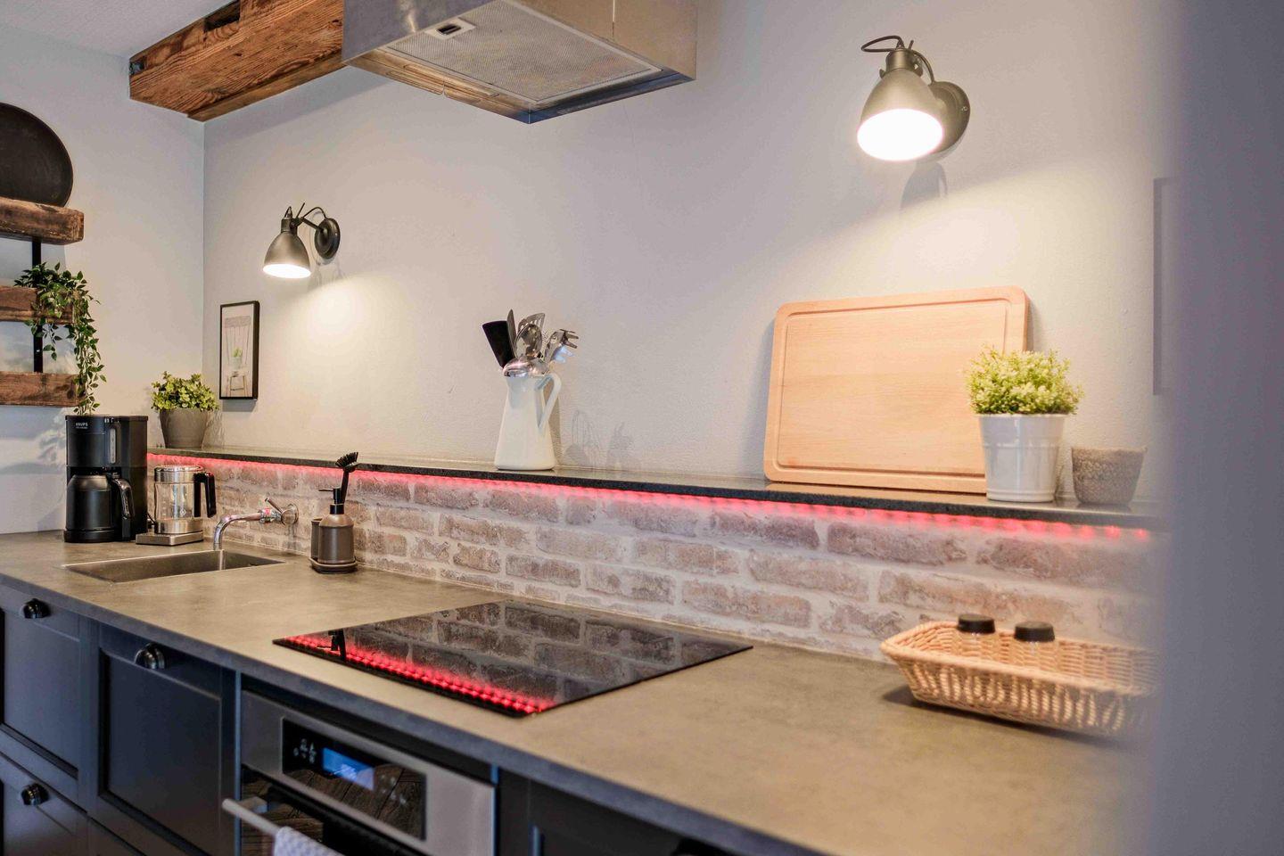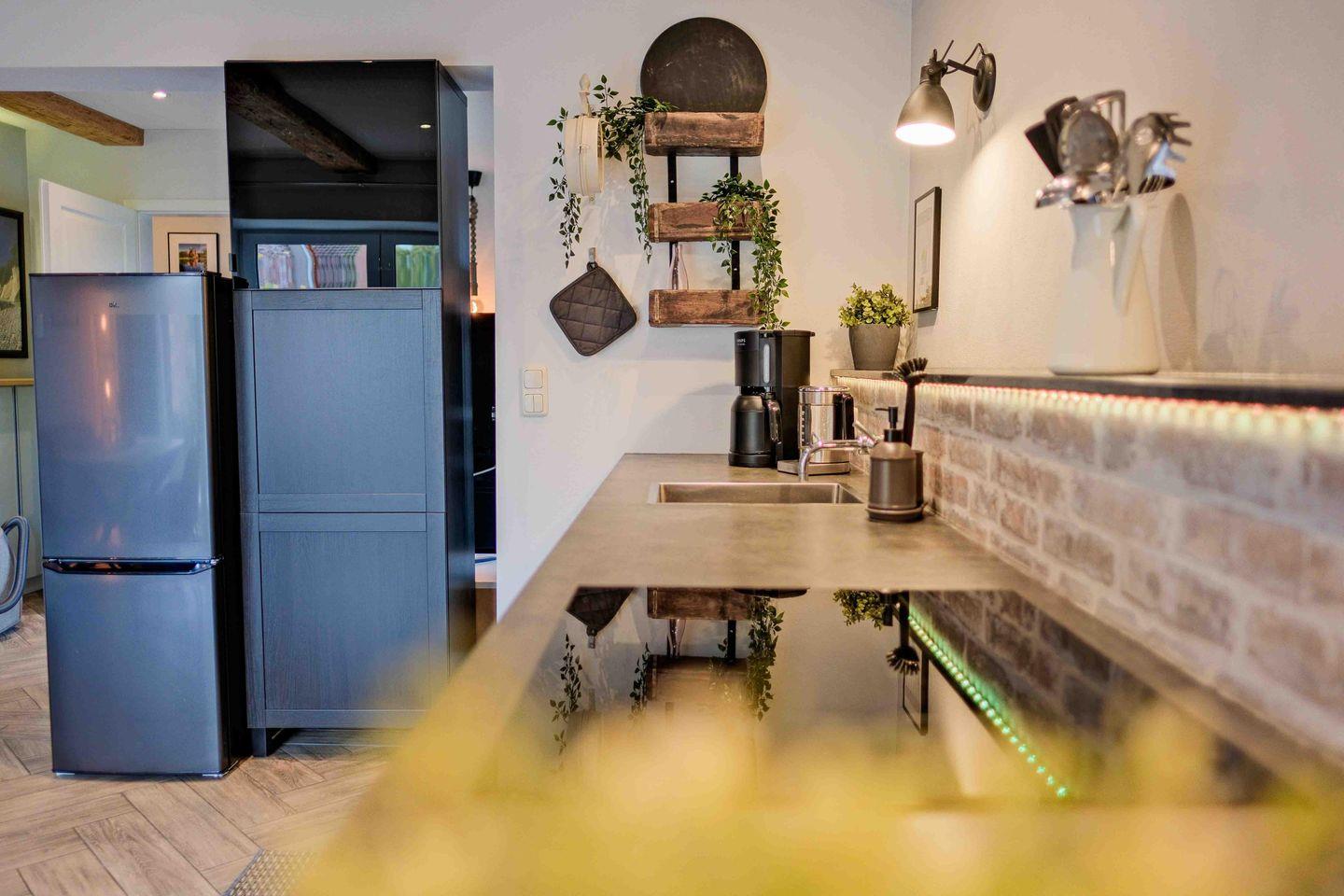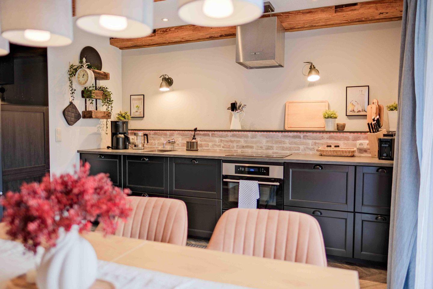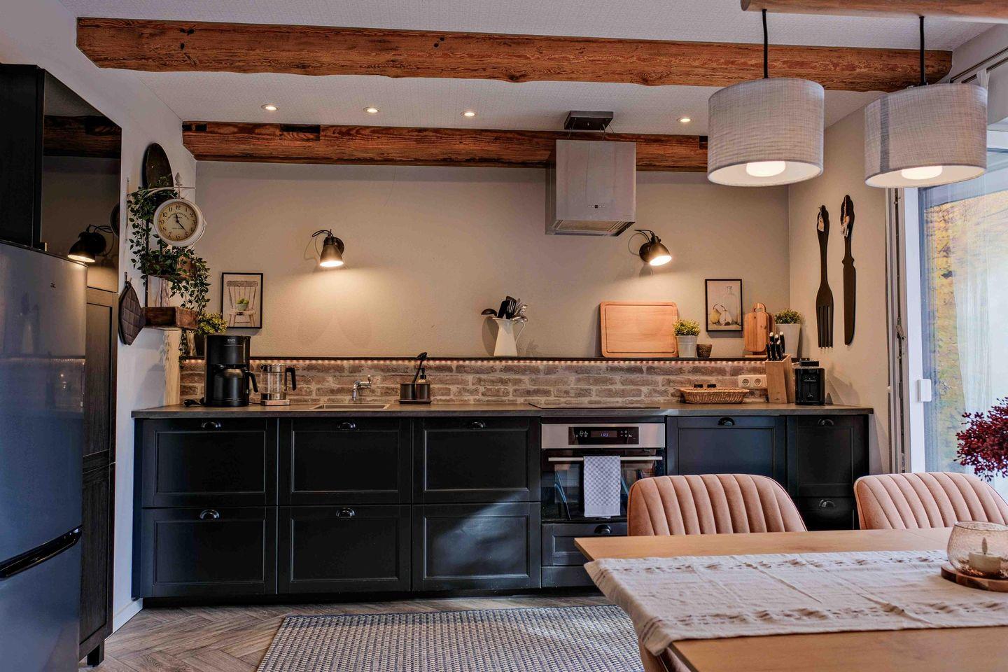 Die moderne Küche ist voll ausgestattet und bietet alles, was das Herz von Hobby-Köch:innen höher schlagen lässt. Offene Ablagen, hochwertige Geräte und ausreichend Platz machen das Kochen hier leicht und angenehm. Direkt daneben der Essbereich – perfekt für gemeinsame Mahlzeiten, Spieleabende oder einfach einen entspannten Start in den Tag.