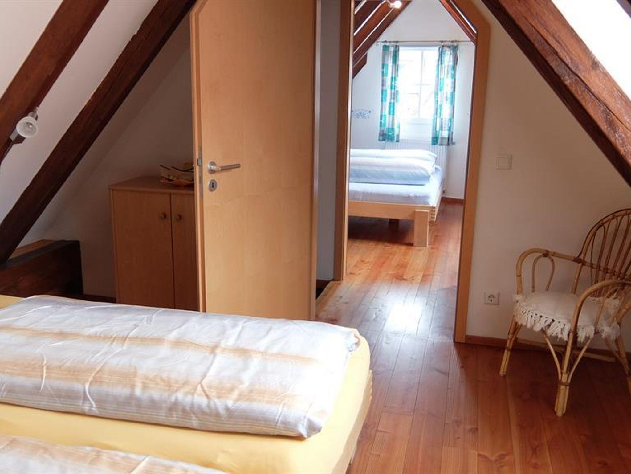 Zweigeschossige, 52 m² große Wohnung für 2-4 Personen mit Dusche/WC. Die Wohnung befindet sich in einem separaten Nebengebäude mit eigenem Eingang und Garage und verfügt über zwei Schlafzimmer. Es steht unseren Gästen ein Freisitz im Hof zur Verfügung. Die Wohnung ist ausgestattet mit TV und Fön. Auf Wunsch halten wir für Sie ein Babybett bereit.