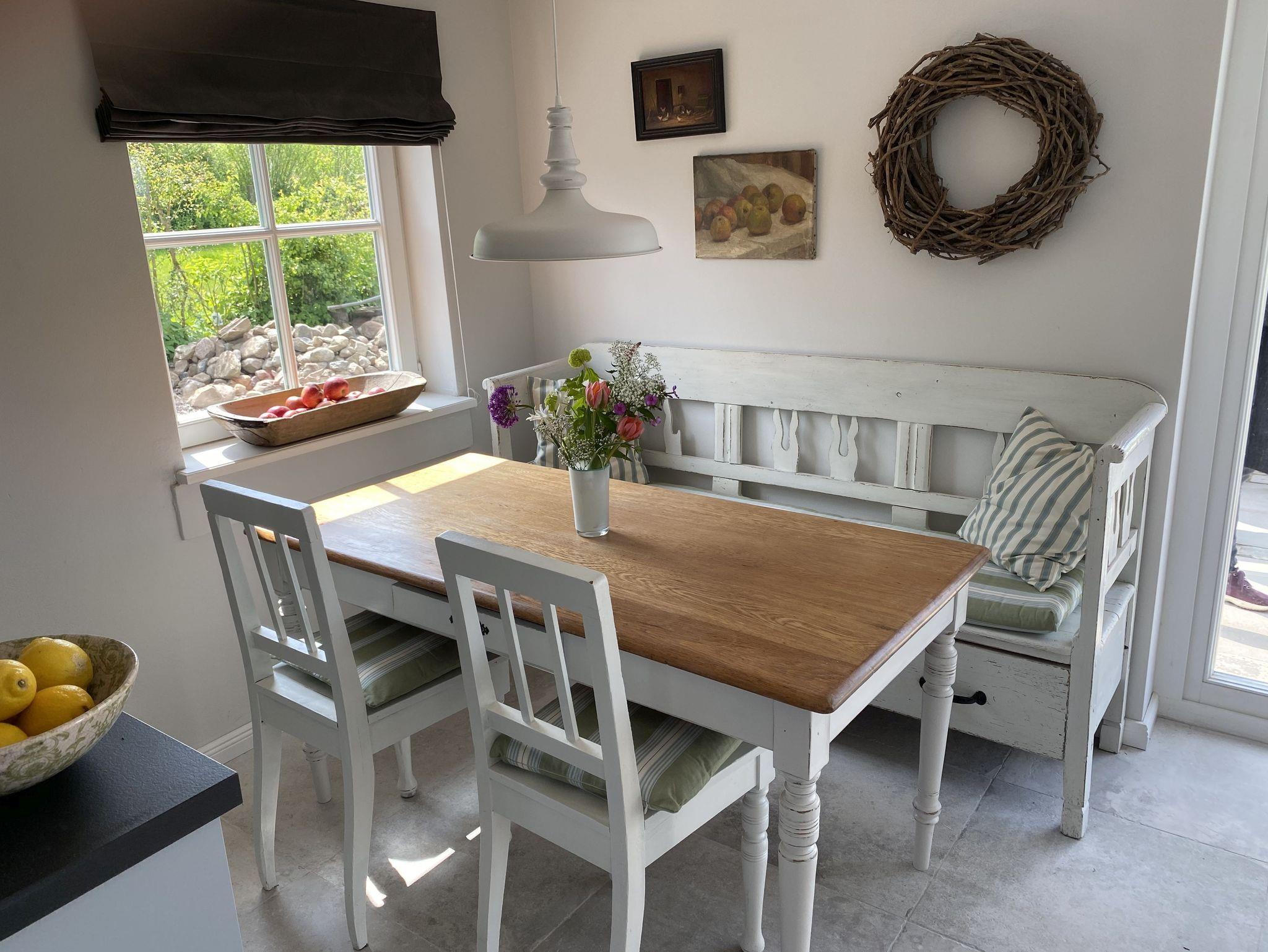 Das Lykkehus besticht durch eine hochwertige Gesamtausstattung mit exklusivem Komfort und sehr hellen und frisch renovierten Räumen. Das Bett im Elternschlafzimmer ist mit luxuriösen, englischen Taschenfederkernmatratzen ausgestattet, damit Sie entspannt schlafen können. Wir haben uns bemüht den Umbau der alten Kate so perfekt wie möglich zu gestalten. Dazu gehört, dass wir die Deckenhöhe im Erdgeschoss erhöht haben, damit man sich nicht den Kopf an niedrigen Deckenbalken stößt, wie es in den alten Katen typisch ist. Bei der Ausstattung haben wir auf eine hochwertige Badausstattung mit großzügiger Dusche und eine komfortable und praktische Küche Wert gelegt.