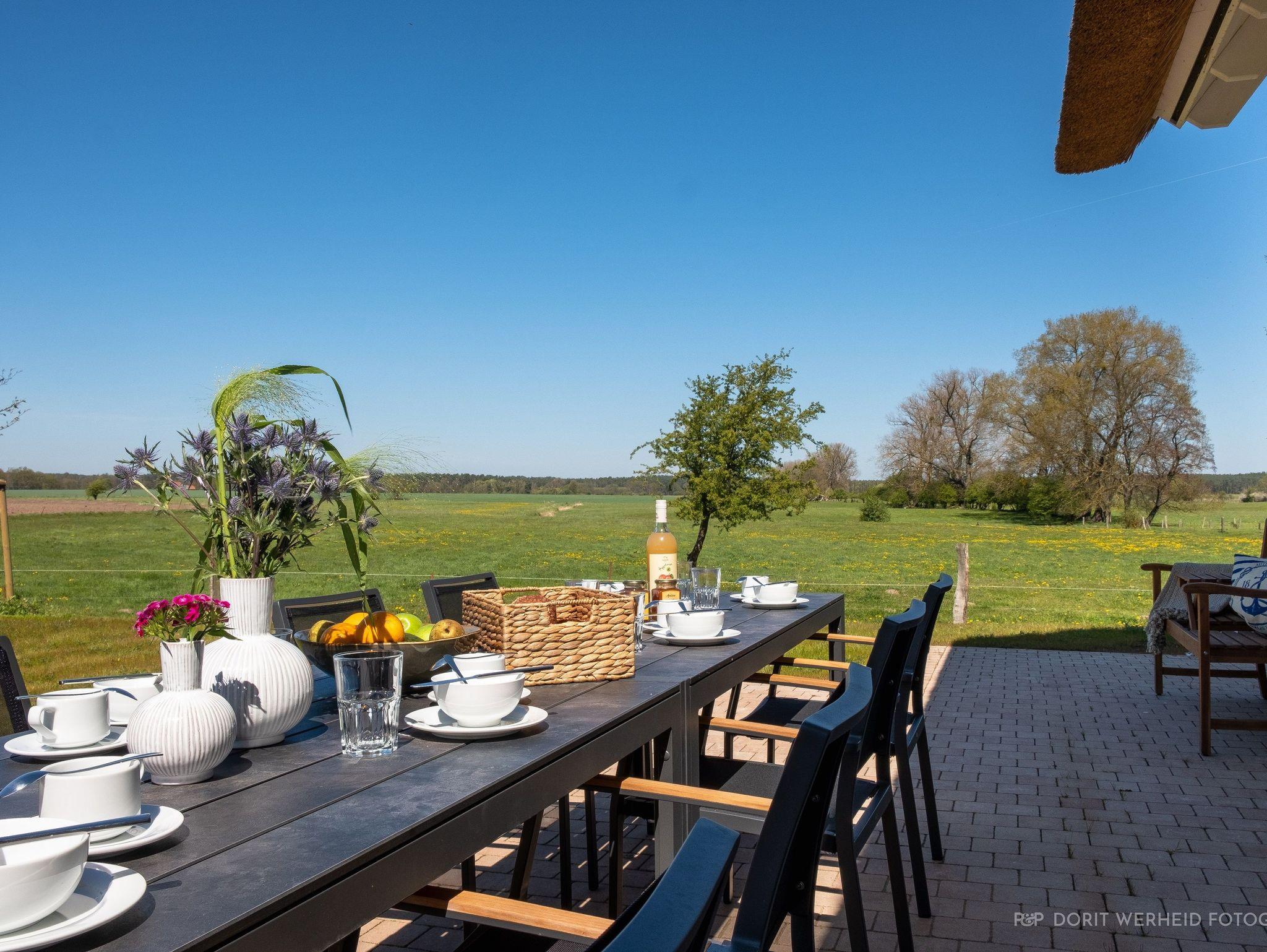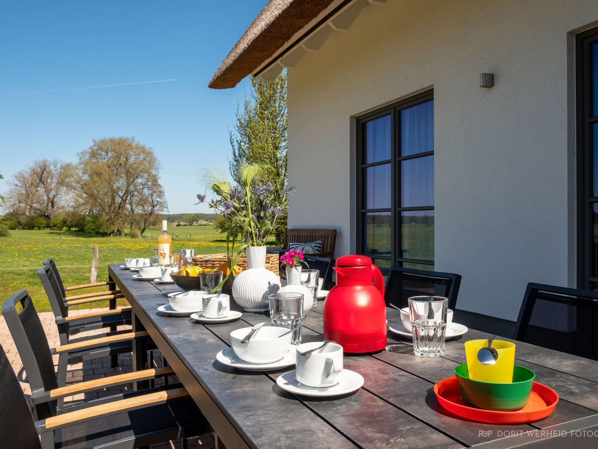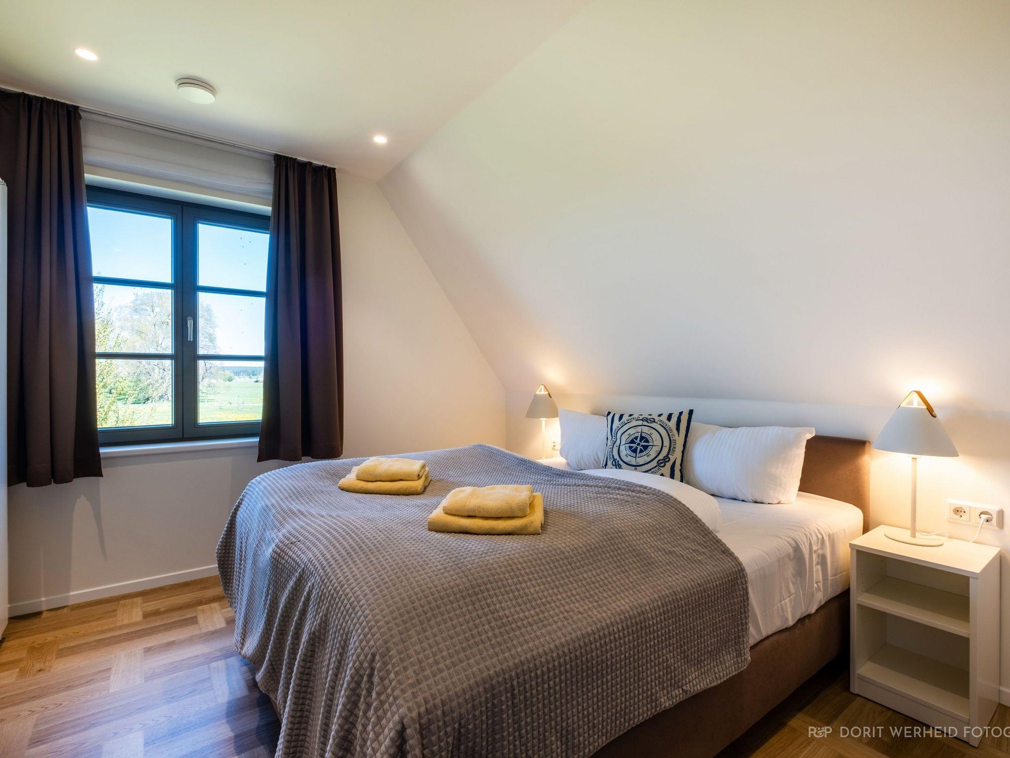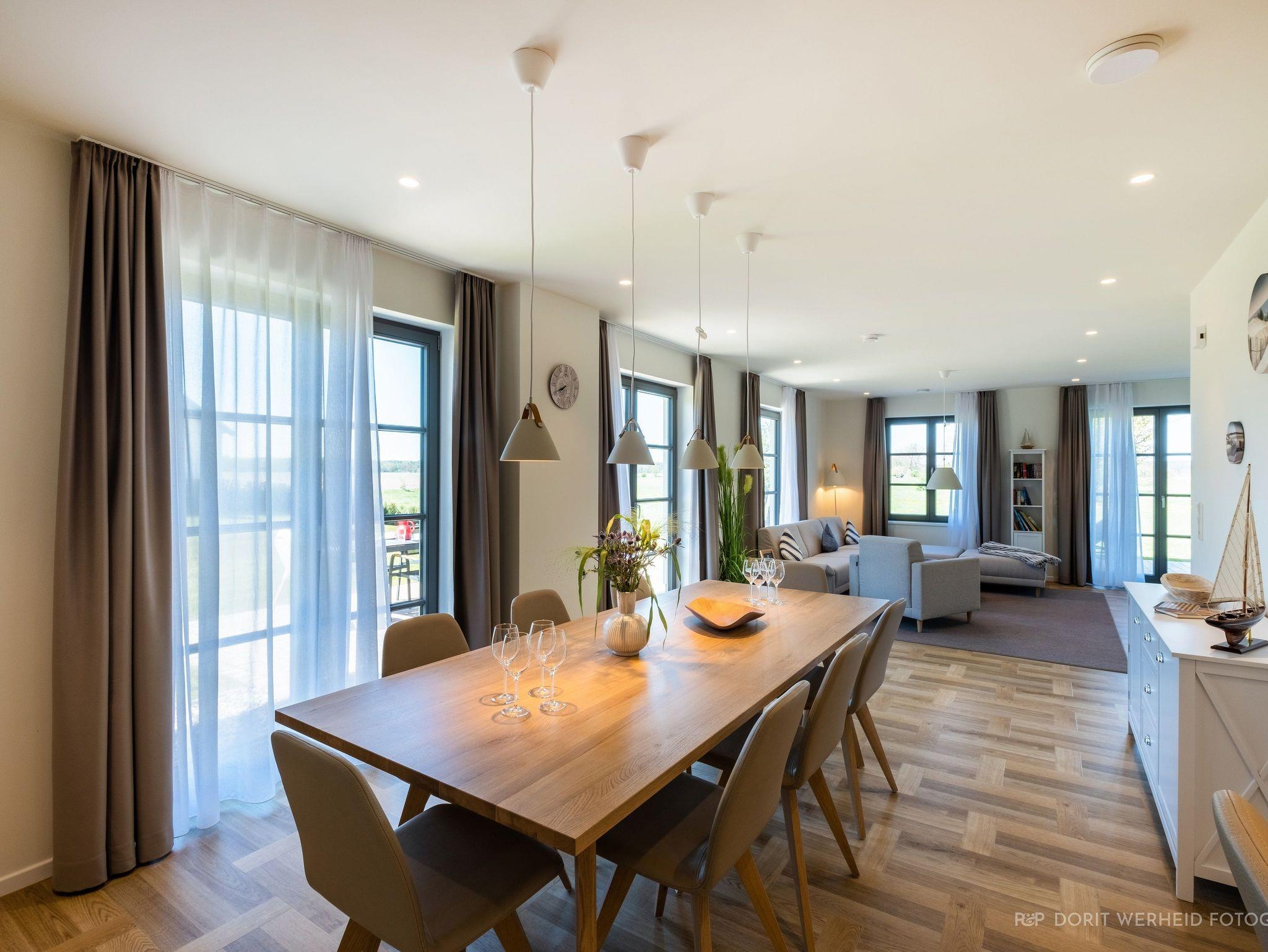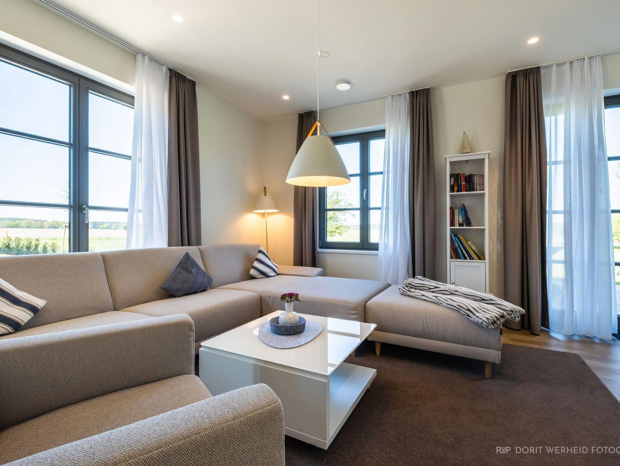 Die Reet gedeckten Häuser wurden in nachhaltiger Holzbauweise errichtet und die Einrichtung ist durch helle sowie freundliche Farben geprägt. Der Blick auf die Haffküste und die umliegende Natur machen Ihren Urlaub einzigartig.