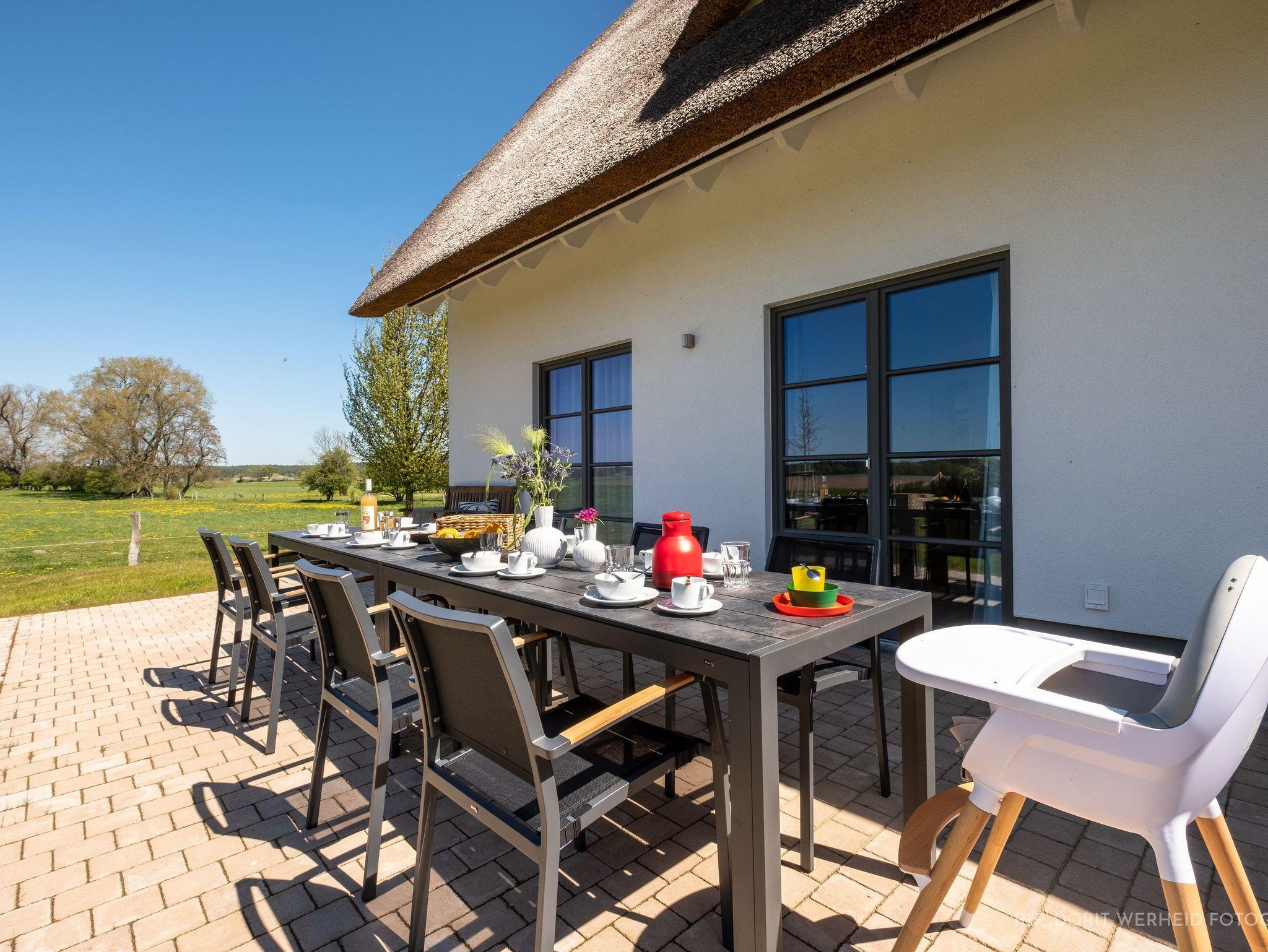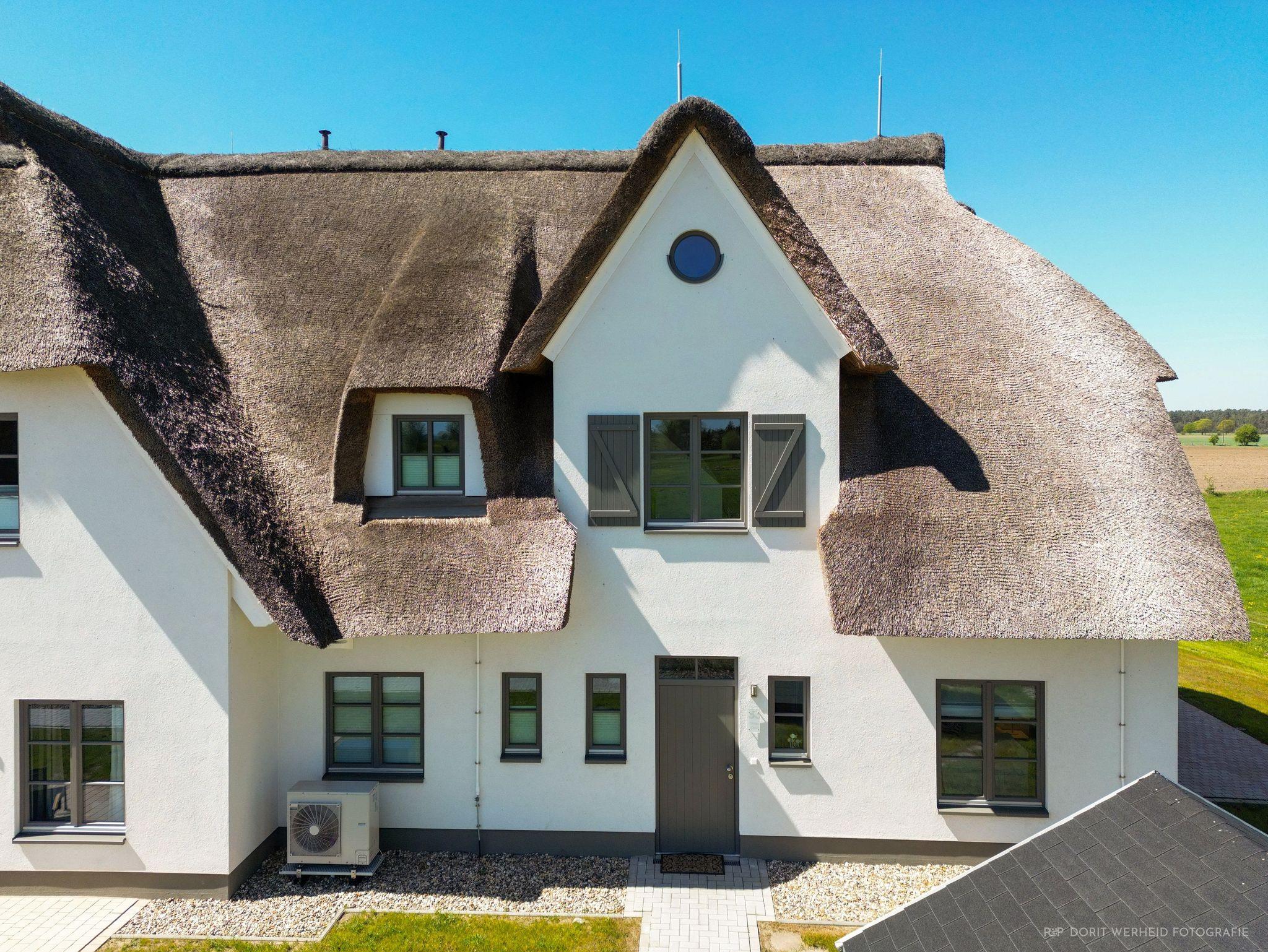 Das stilvoll-moderne Ferienhaus Antonín Dvorak auf Usedom bietet mit Sauna und Garten ein einzigartiges Urlaubserlebnis unter Reetdach.