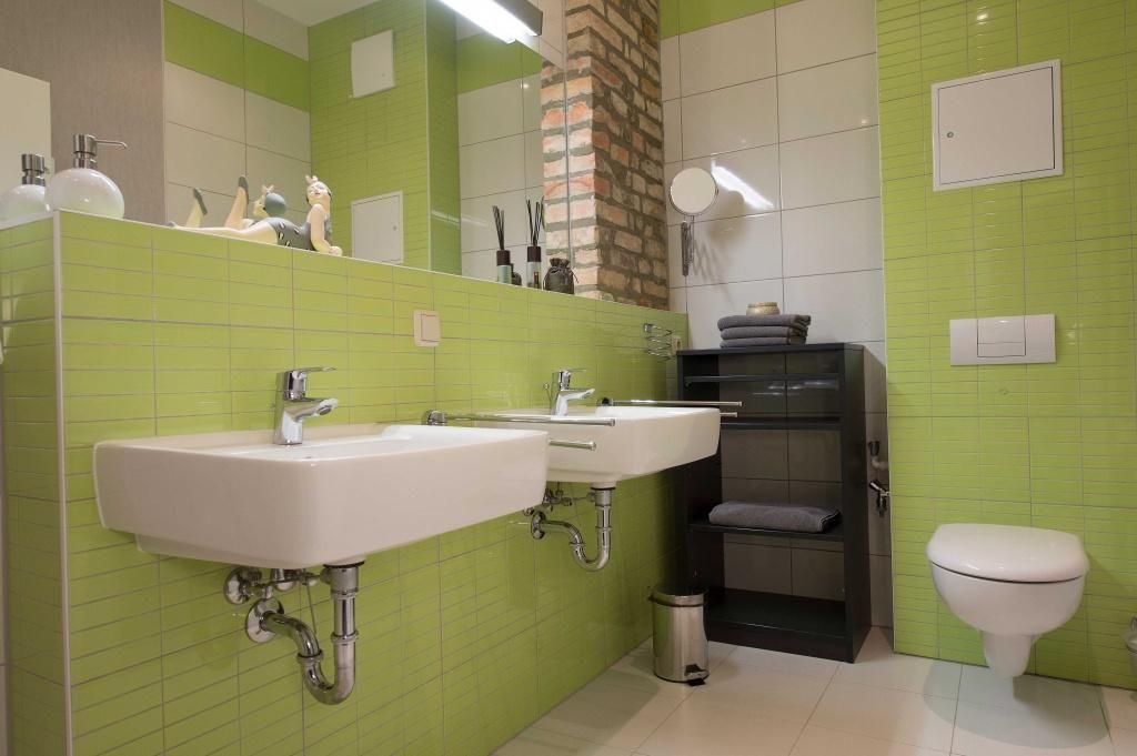 Das großzügige Bad mit Dusche, WC und Doppelwaschtisch verfügt über Fön und Kosmetikspiegel.