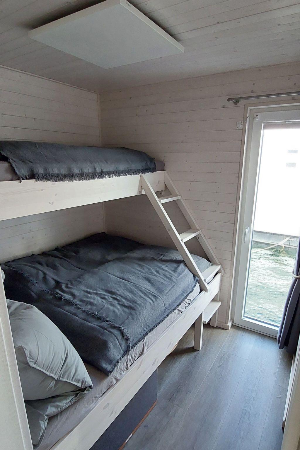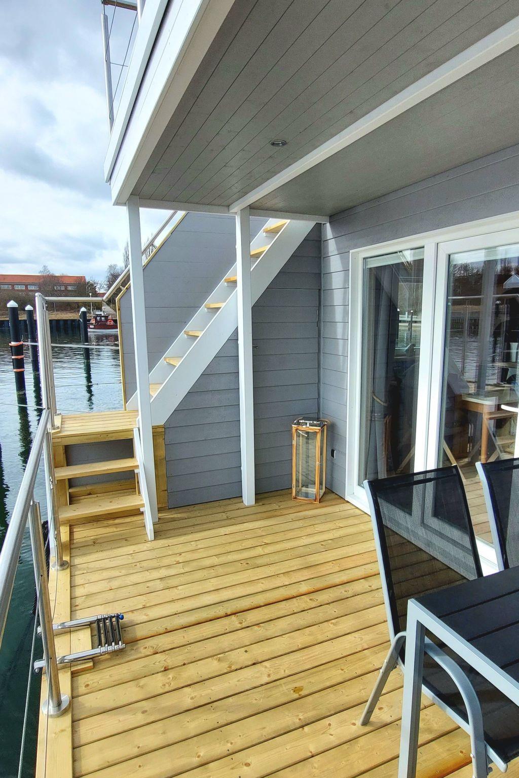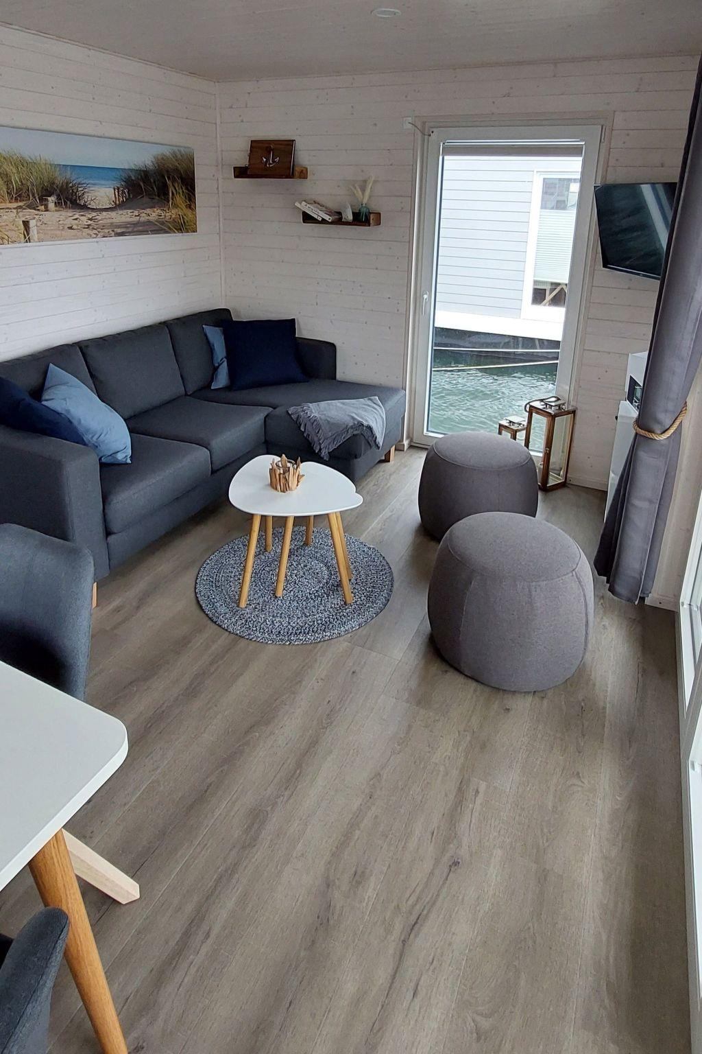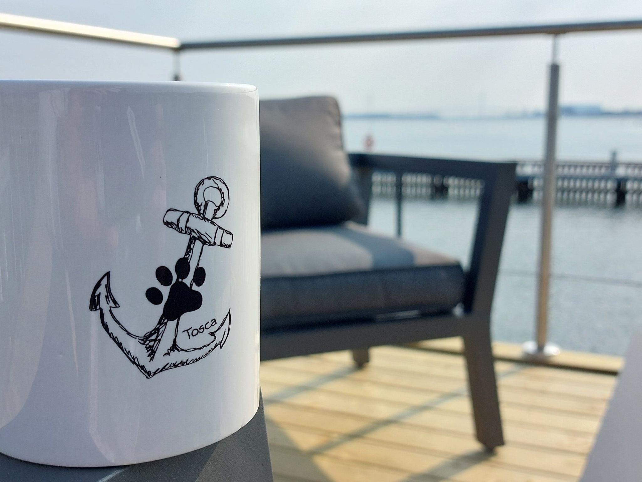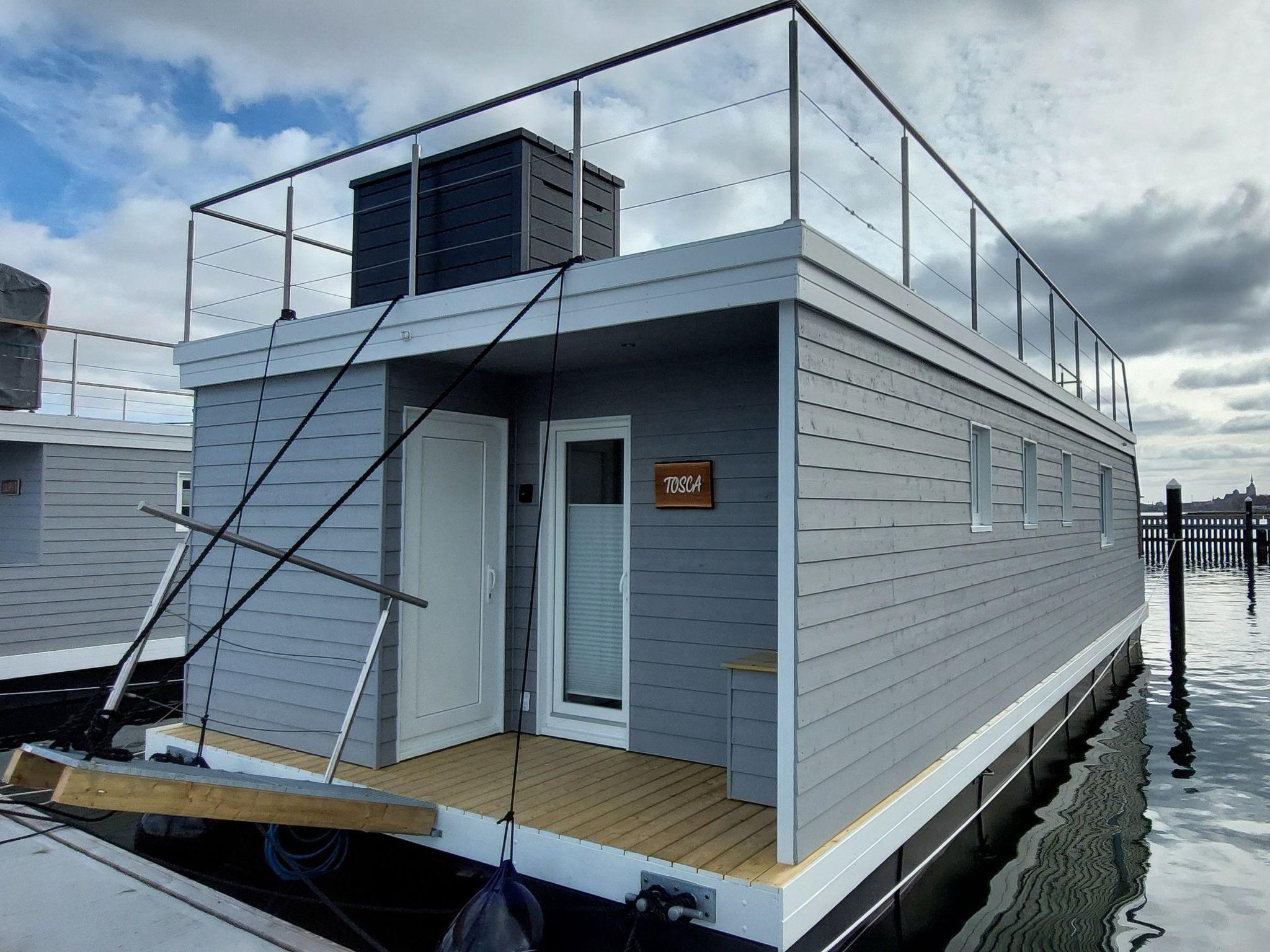 Erleben Sie einzigartigen Komfort auf dem Hausboot Tosca mit traumhaftem Hafenblick in Stralsund.