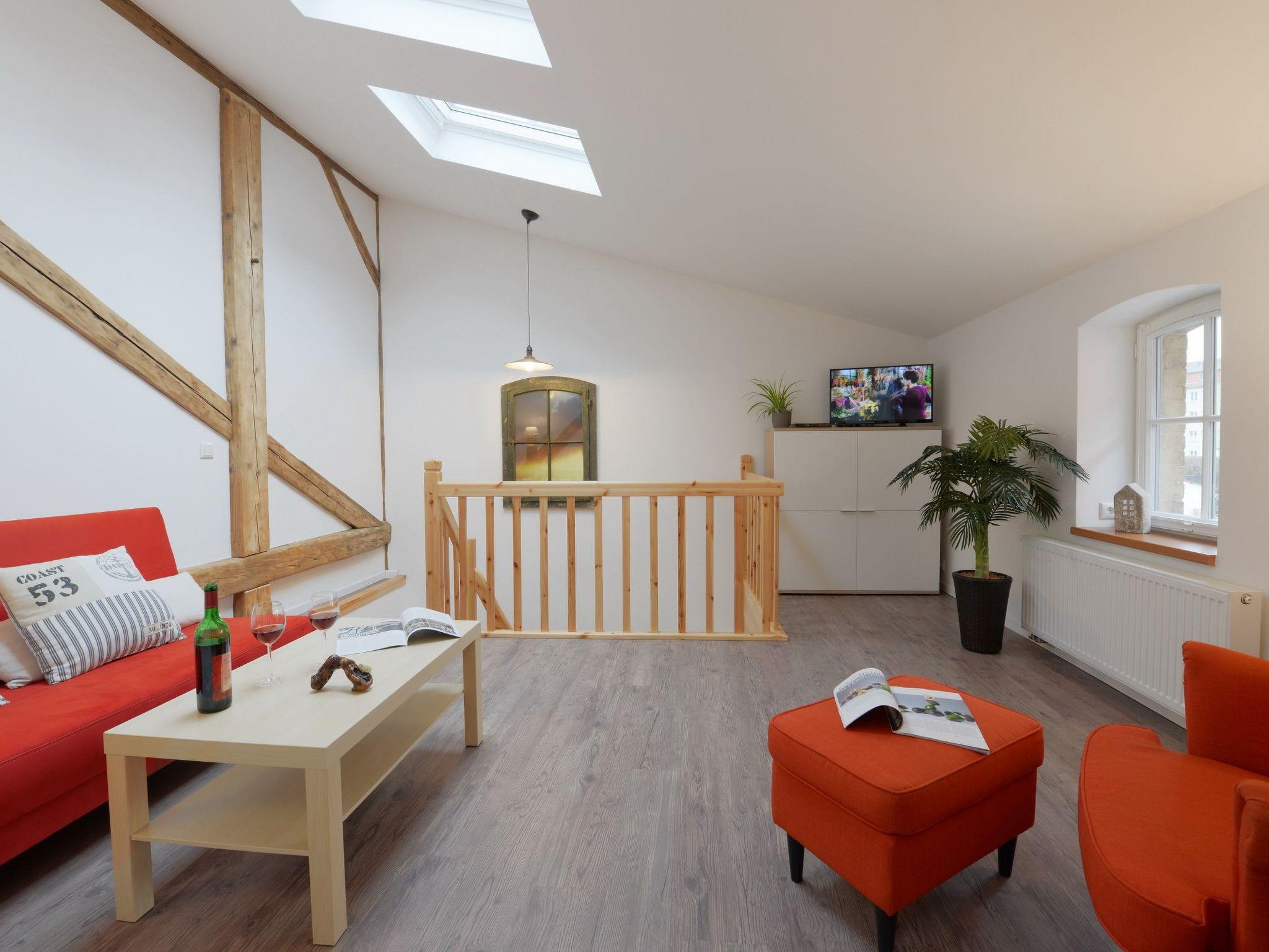 Unsere Wohnung zum Hufschmied befindet sich im Obergeschoss der Alten Schmiede und wurde in den historischen Mauern vollständig neu aufgebaut. Die Ferienwohnung hat ein Schlafzimmer mit Doppelbett und ein Schlafzimmer mit Doppelbett und Schlafcouch (140cm) und eine Schlafcouch (160cm) im Wohnzimmer. Das Wohnzimmer ist modern eingerichtet, verfügt über eine gemütliche Sofaecke, die sich zur Schlafgelegenheit umbauen lässt. Für Unterhaltung sorgt der Flachbildschirm und der Internetanschluss über WLAN. Die Küche ist separat und verfügt über einen Essbereich, sie verbindet alle Räume miteinander. Das Badezimmer ist ausgestattet mit einer ebenerdigen Dusche, einer Badewanne, einem beheizten Handtuchhalter, sowie einem Waschtisch,einem WC und einer Waschmaschine mit Trockner. Parkmöglichkeiten für diese Wohnung sind direkt vor dem Haus auf der öffentlichen Straße. Legen Sie Wert auf einen privaten Parkplatz, buchen Sie bitte unser Ferienhaus im Hof: zum Stallmeister.
