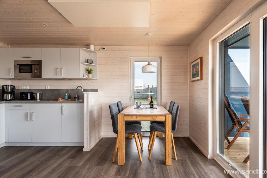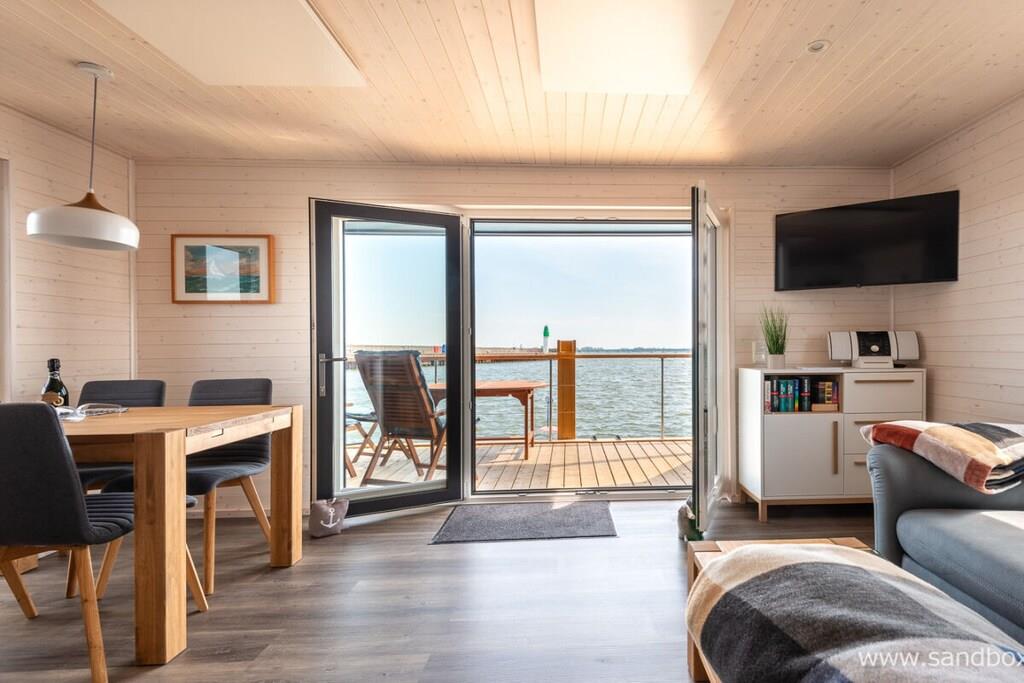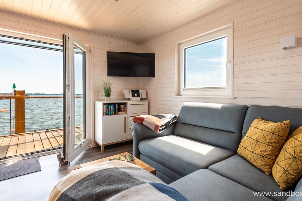 Erleben Sie maritime Gemütlichkeit auf dem skandinavisch gestalteten Hausboot Harmonie an der Ostseeküste.