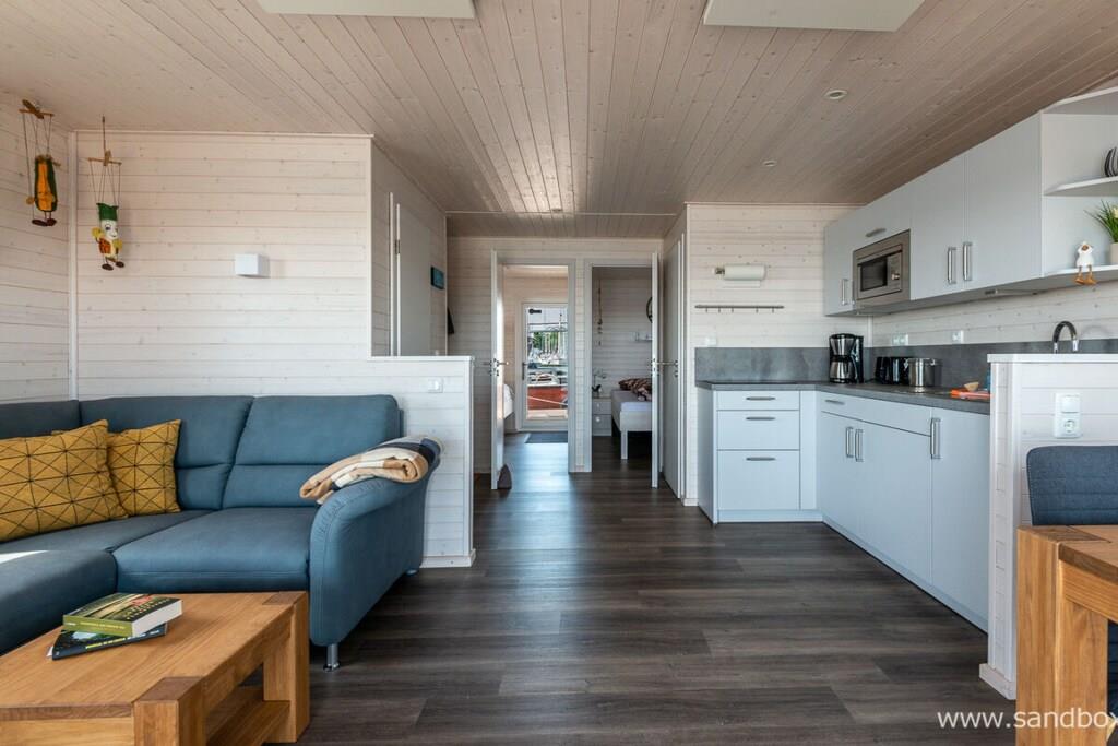 Unser Hausboot "Harmonie" im skandinavischen Landhausstil kombiniert auf dezente Weise das Gemütliche mit dem Maritimen und bietet Ihnen eine behagliche Unterkunft zur Erholung von Ihren Unternehmungen entlang der Ostseeküste. Auf 40 qm finden Sie eine vollausgestattete Küche, eine große Sitzecke mit Blick auf den Hafen sowie ein Bad mit Dusche und ein separates WC. Das Schlafzimmer mit Doppelbett und Fernseher bietet Ruhe und Privatsphäre. Zwei weitere Schlafplätze stehen als Etagenbetten zur Verfügung.