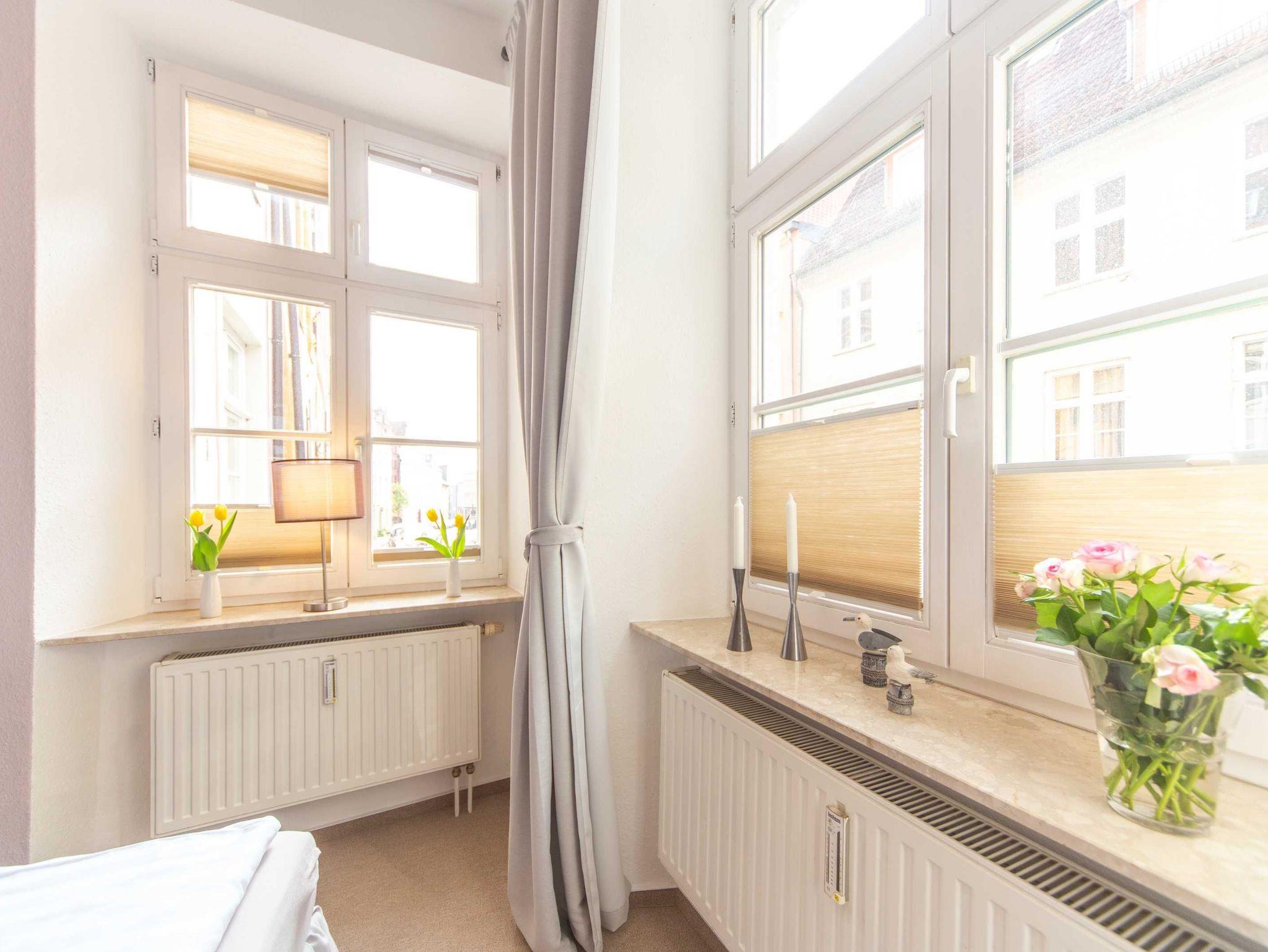 Die drei Appartements liegen direkt im Stadtzentrum am Alten Markt, in einer ruhigen und historischen Seitenstraße. Sie wohnen in einem dreigeschossigen, sanierten Altbau, der im Jahr 1331 gebaut wurde und damit zu einem der ältesten Gebäude Stralsunds gehört.