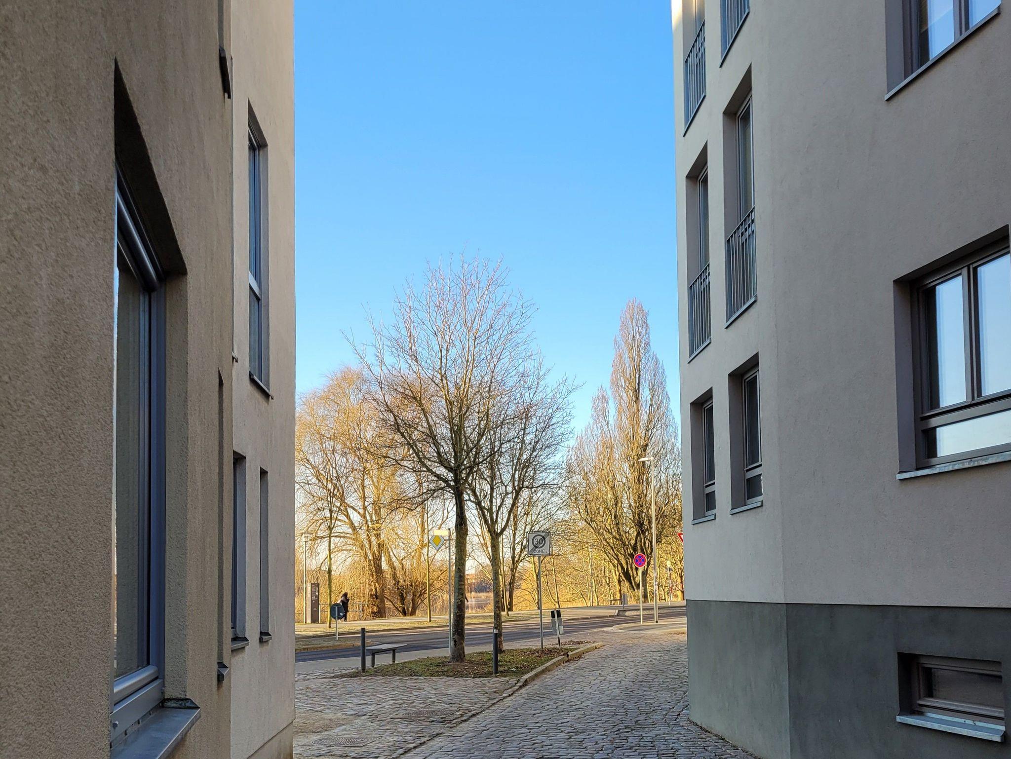 Helle Ferienwohnung in Stralsund, nahe Altstadt und Boddenküste, mit kostenfreiem Parkplatz und guter Verkehrsanbindung.