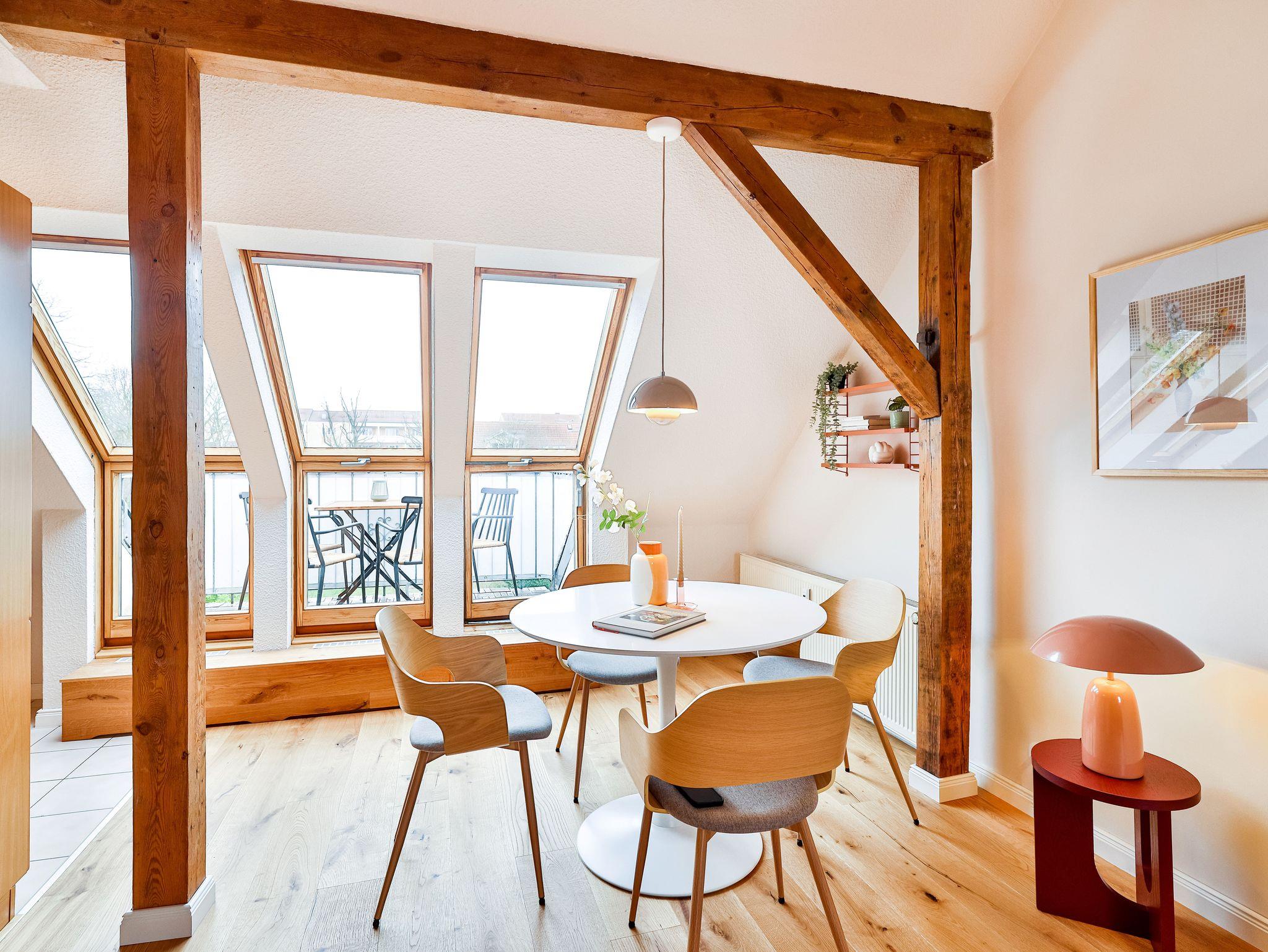 Einkaufsmöglichkeiten (Supermarkt) und Bushaltestelle sind 2 Gehminuten entfernt. Bis in das Zentrum (Markt) benötigt man 5 Gehminuten. Die Wohnung liegen im 1.OG und 2.OG eines komplett sanierten Apartmenthauses und verfügen über einen großen Garten im Hof. Die Gemeinschaftsterrasse und die Rasenflächen dürfen gerne von den Gästen genutzt werden.
