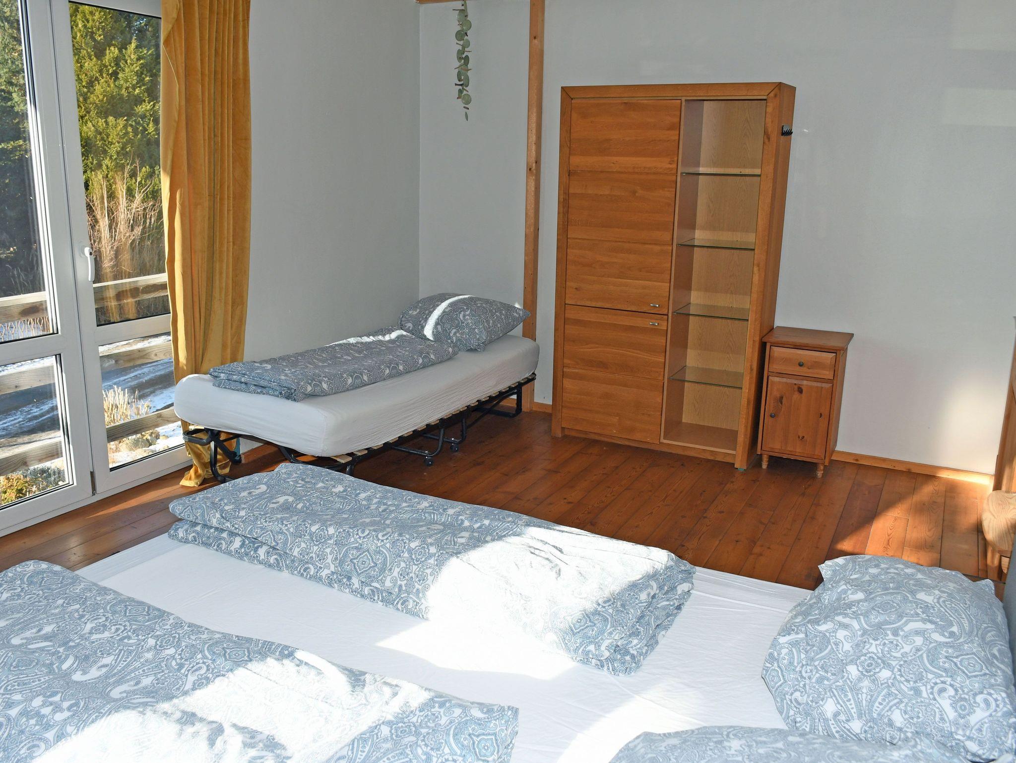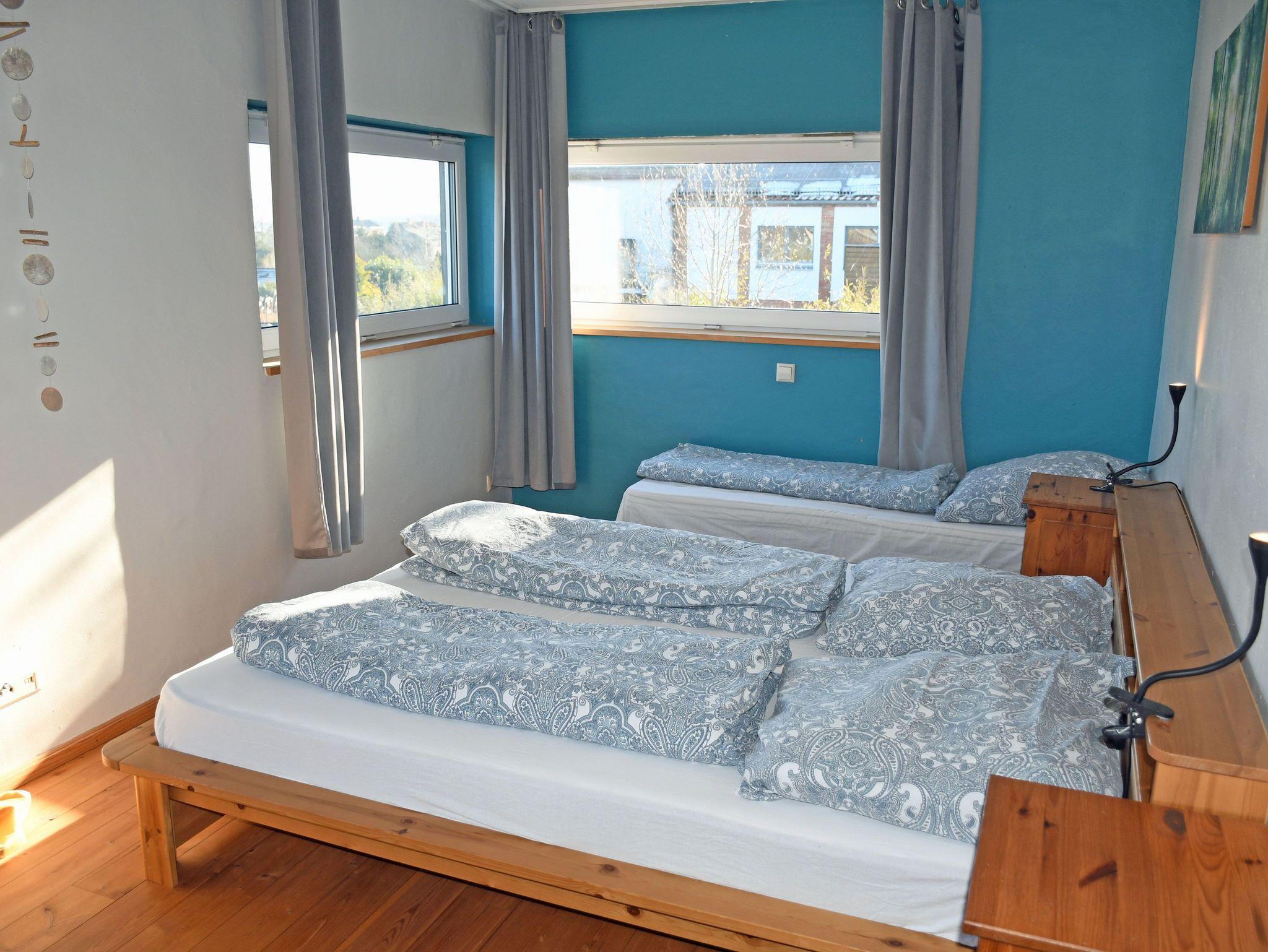 Die Schlafzimmer befinden sich im Obergeschoss. Zwei Schlafzimmer haben ein bequemes Doppelbett mit Nachttischen und Leselampen, ein Einzelbett sowie einen Kleiderschrank. In den beiden anderen Schlafzimmern befinden sich je ein Doppelbett mit Nachttisch und ein großer Kleiderschrank.