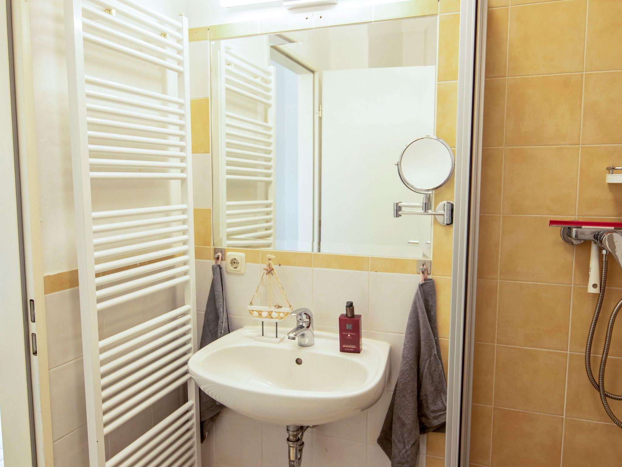 Das Altstadt-Studio 3 befindet sich im 1. OG am Neuen Markt in der Stralsunder Altstadt. Über den Fahrstuhl erreichen sie das moderne, helle Studio mit altbaustypischen hohen Decken. Hier stehen ihnen ein Schlafzimmer, ein Wohnzimmer mit Schlafsofa (160x200), TV und Essbereich, eine Küche und ein Bad mit Dusche zur Verfügung. In der Küche finden sie neben Backofen, Herd, Kühlschrank und Mikrowelle auch Kochutensilien für den täglichen Bedarf. Das Schlafzimmer ist mit einem Doppelbett (180x200) und einem Deckenventilator ausgestattet.