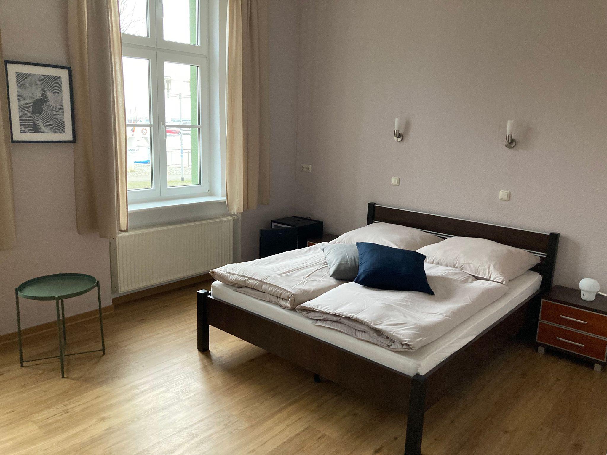 Modernes Apartment am Hafen von Stralsund mit Seeblick und Gemeinschaftsküche, ideal für Paare und Geschäftsreisende.