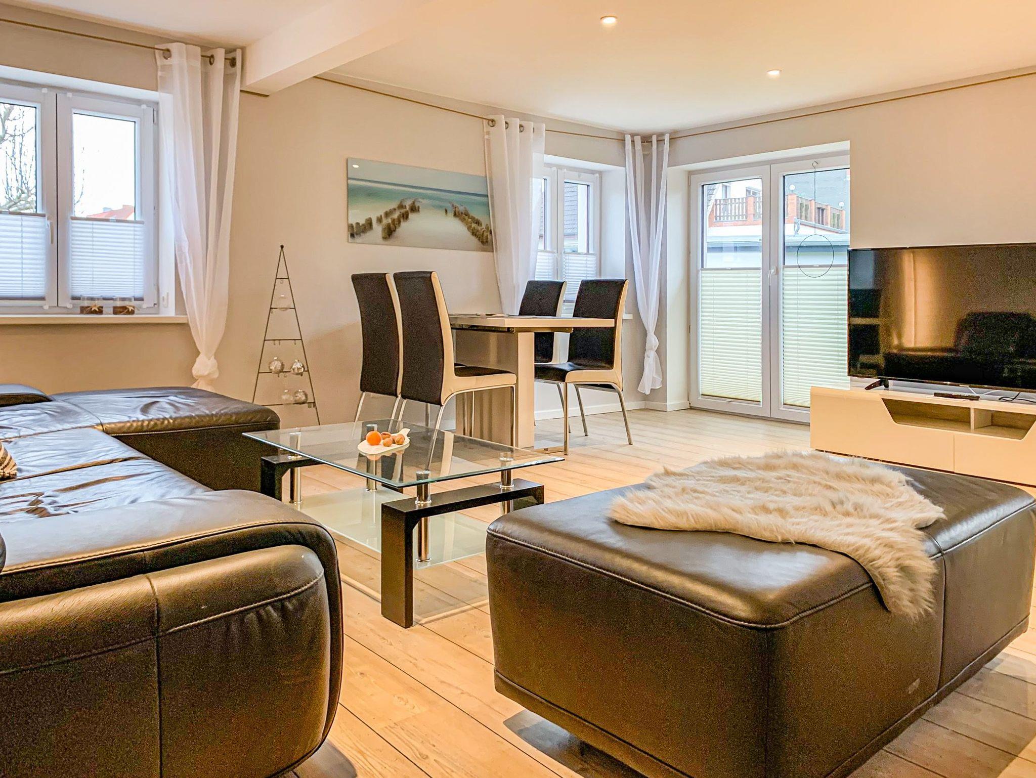 Das Sundhaus in Stralsund bietet modernes Ferienwohnen mit Balkon, Terrasse und Nähe zur UNESCO-Welterbestadt.