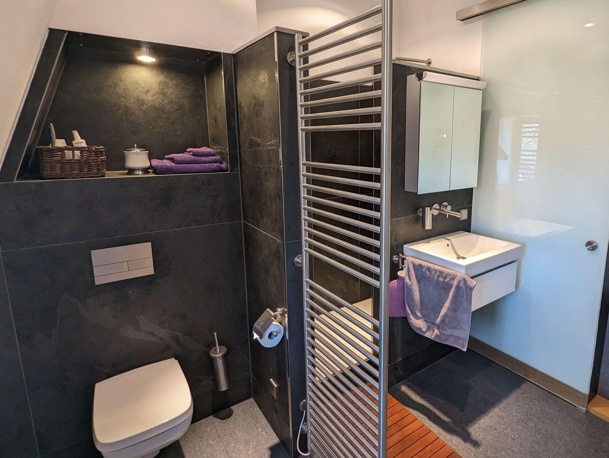 Bei der Sanierung verwendeten wir Lehmputz und sie wird mit Strahlungswärme Heizkörpern beheizt.