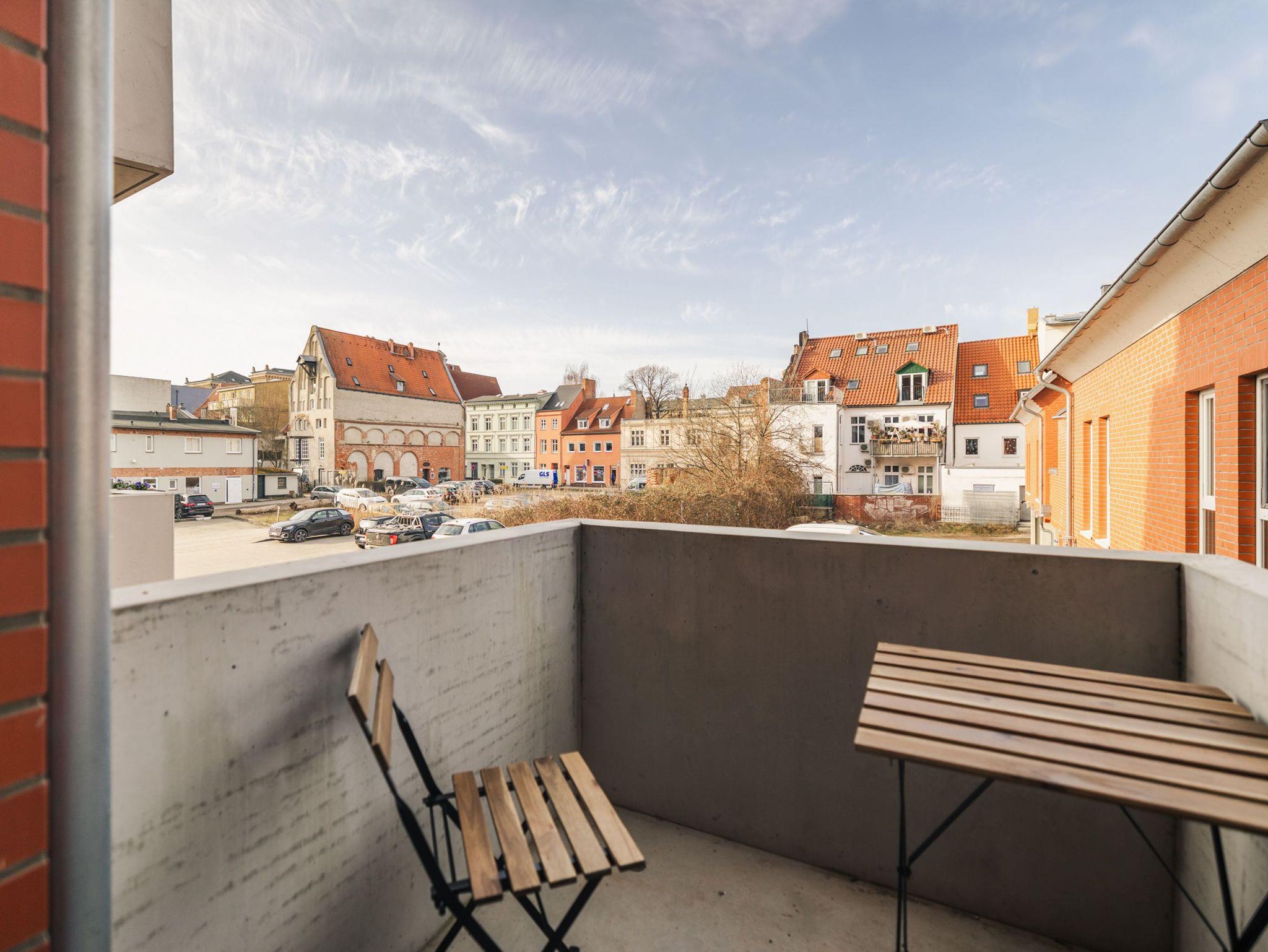 Charmantes Altstadt Studio in Stralsund mit Balkon, moderner Ausstattung und E-Auto-Ladestation.