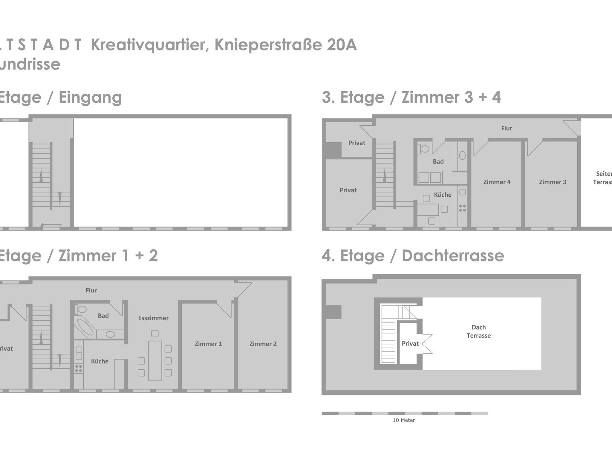 Betrachten Sie die Dachlandschaft unserer Vergangenheit aus der Vogelperspektive. Das Altstadt-Kreativquartier hat eine Dachterrasse und vier separate Doppelzimmer auf zwei Etagen, die sich zwei Küchen und Bäder teilen. Sie können Ihre Mahlzeiten selbst zubereiten und sich von Ihren Mitreisenden inspirieren lassen. Großformatige Bilder schmücken die Wände und regen zum Malen an. Bei Bedarf kann ein Kinderbett (bis 3 Jahren) gestellt werden. Auch Waschmaschine und Trockner sind vorhanden. Gelegen zwischen Altem Markt und Kniepertor befinden Sie sich mitten im Geschehen. Restaurants und Cafés, Läden, ein Discounter, das Theater und mehrere Museen, alles ist fußläufig zu erreichen. Öffentliche Verkehrsmittel und ein Parkhaus sind nur 200 Meter entfernt.