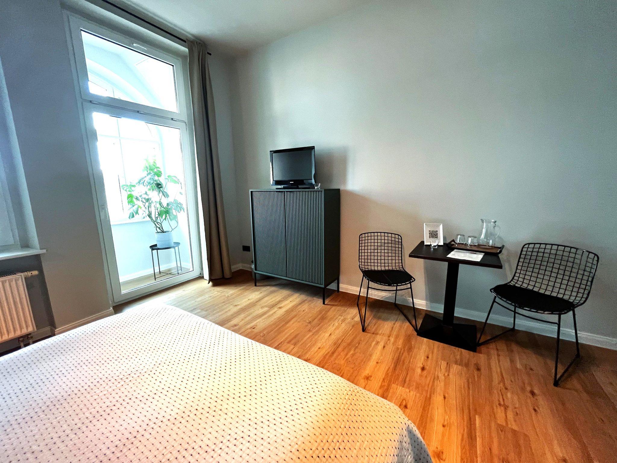 Das Apartment 4 verfügt über ein eigenes Duschbad und einen Wohn- bzw. Schlafraum mit 1 Doppelbett. Eine Aufbettung für Kleinkinder bis 3 Jahren ist möglich. Zu diesem Apartment gehört eine Loggia mit Blick auf den Hafen.