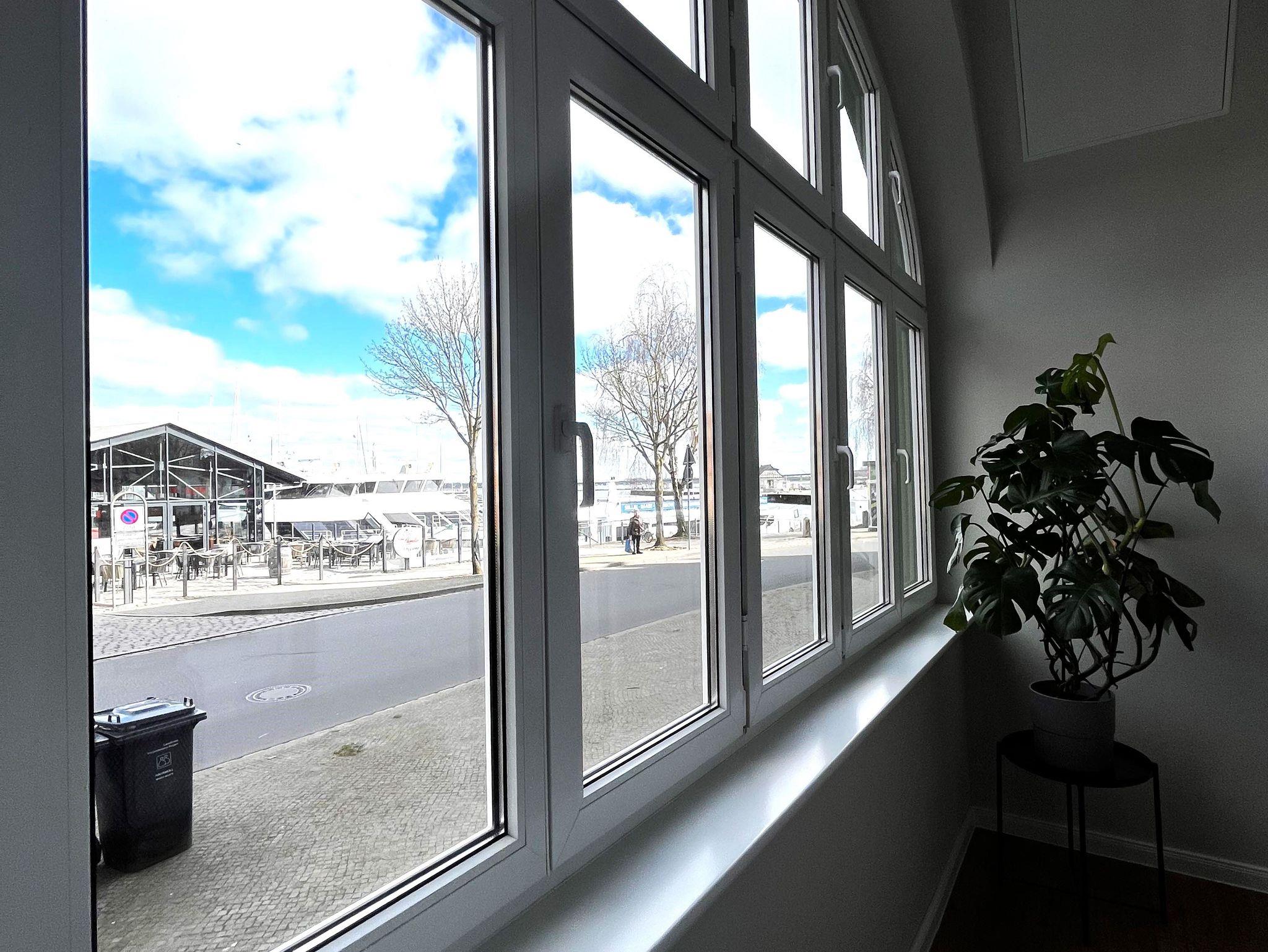 Modernes Apartment direkt am Hafen von Stralsund mit Loggia und herrlichem Meerblick.