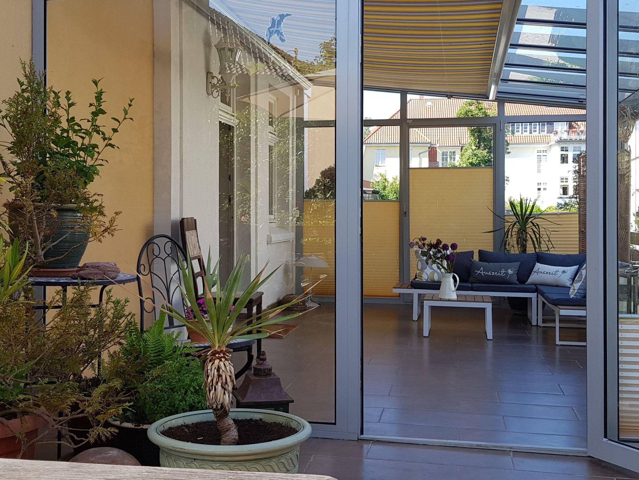 Genießen Sie eine stilvolle Ferienwohnung mit Wintergarten und Terrasse in einer historischen Stadtvilla in Stralsund.
