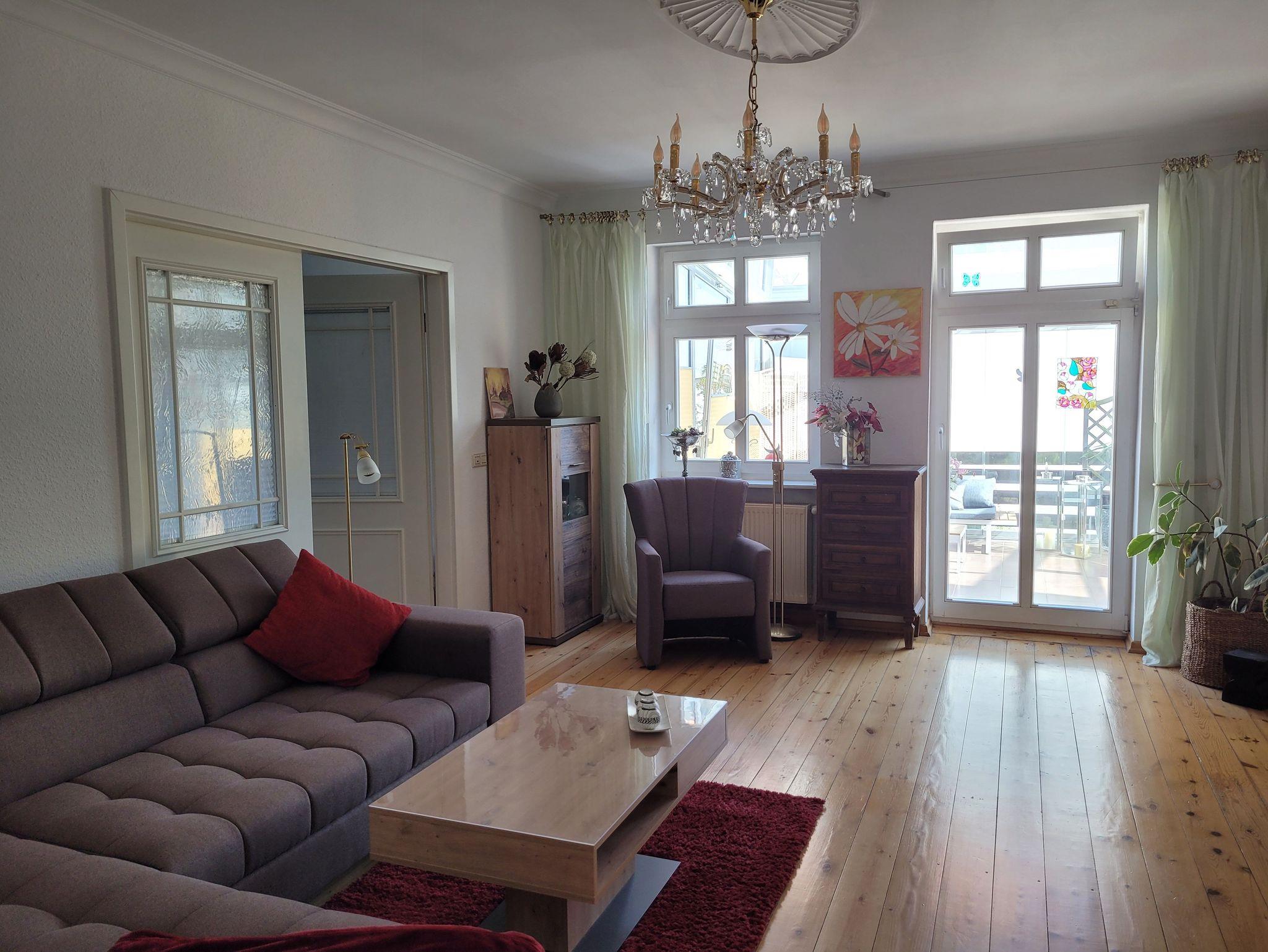 Die Ferienwohnung in der Stadtvilla des 20. Jahrhunderts, besticht durch ihre hohen Decken sowie gestalteten Wohlfühlräume. Alt und neu wurden in der Ausstattung harmonisch kombiniert, der lichtdurchflutete Wintergarten mit Terrasse ist ein Highlight.