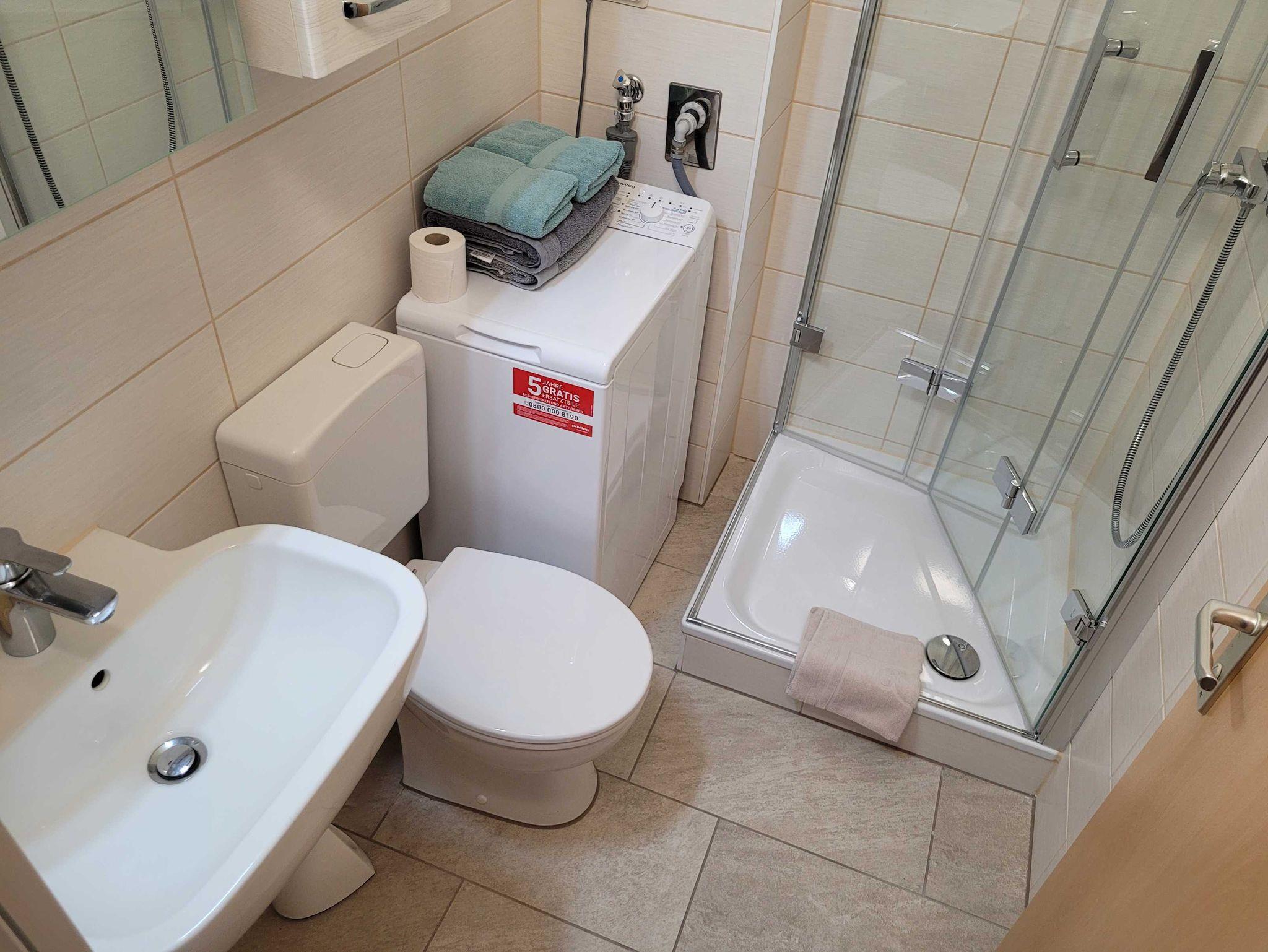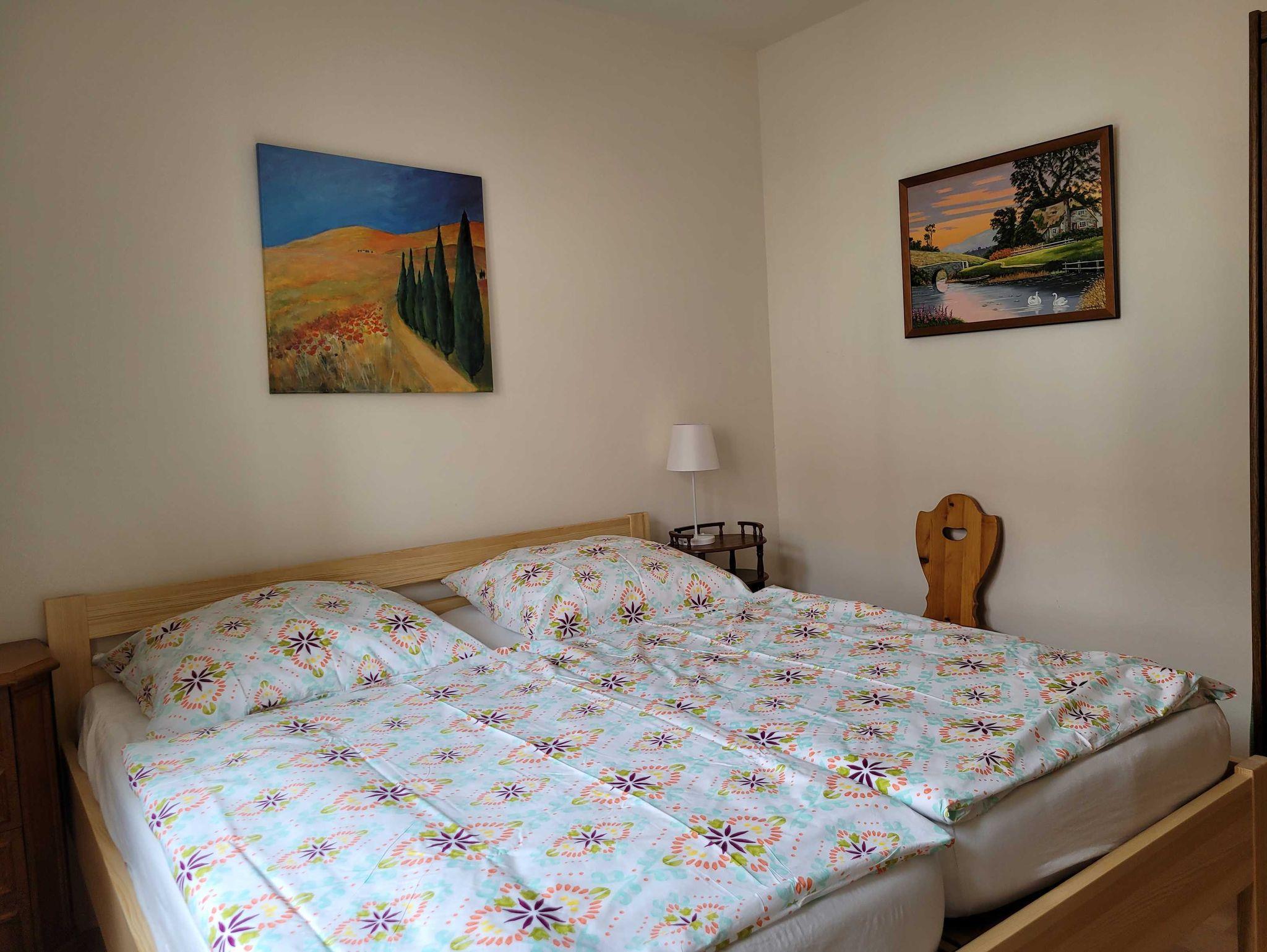 Die Wohnung verfügt über ein Schlafzimmer mit Doppelbett, Wohnzimmer, Wohnküche, Bad mit Dusche/WC und einen Balkon in Süd-West-Lage.