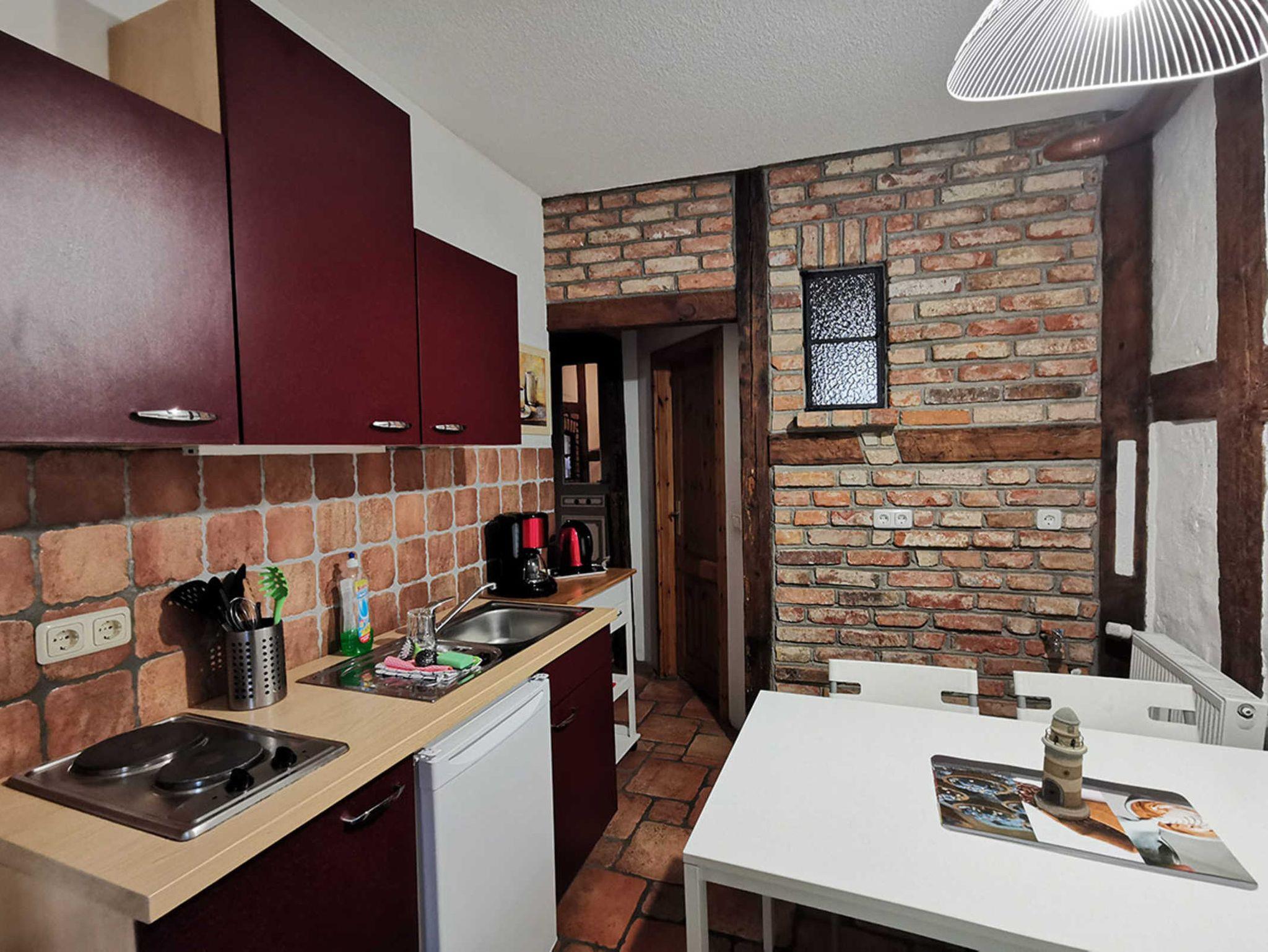 Unsere kleine, aber feine stilvoll eingerichtete Ferienwohnung Kajüte 3 befindet sich in der Frankenstr. 49 im Erdgeschoss, direkt in der Altstadt in Hafennähe.