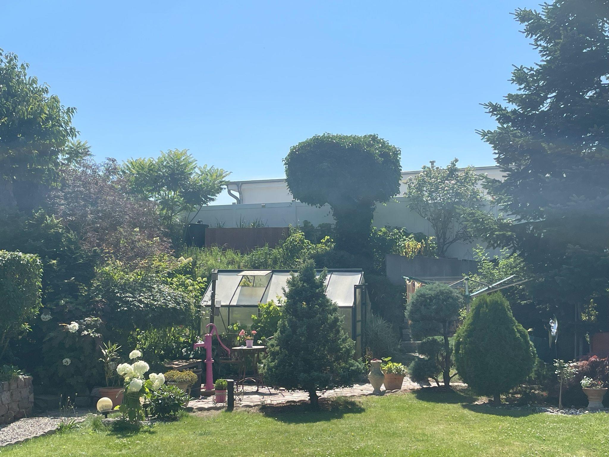 Genießen Sie die frische Luft und einen atemberaubenden Blick auf den gepflegten Garten. Die möblierte Terrasse bietet den perfekten Platz für ein Frühstück im Freien oder zum Entspannen nach einem langen Tag.