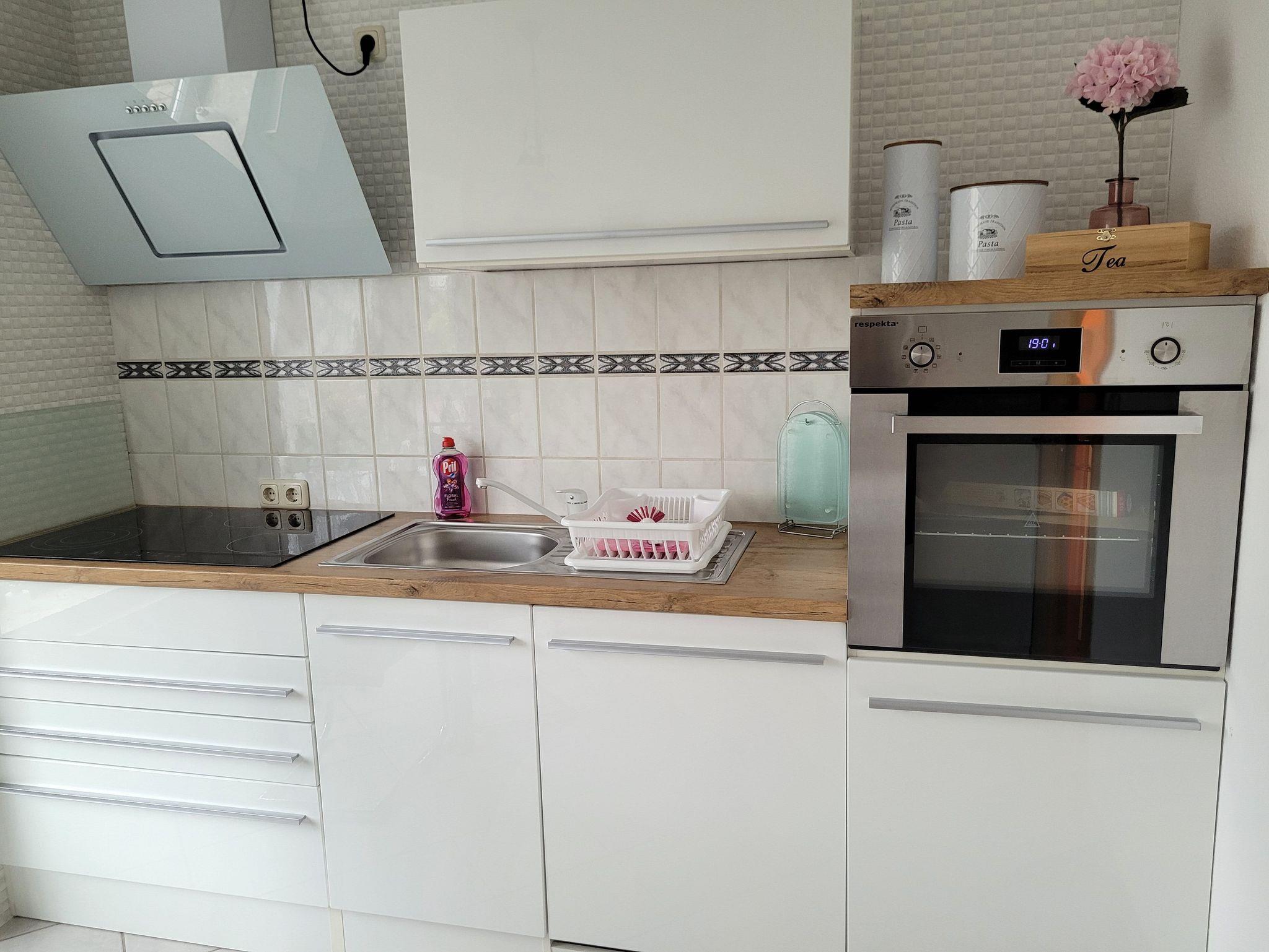 Die moderne Küche lässt keine Wünsche offen. Mit Herd, Backofen, Kühlschrank und Geschirrspüler ausgestattet, bieten wir Ihnen alles, was Sie zum Zubereiten Ihrer Lieblingsgerichte benötigen. Alle notwendigen Utensilien, wie Töpfe, Pfannen und Geschirr, stehen Ihnen zur Verfügung.