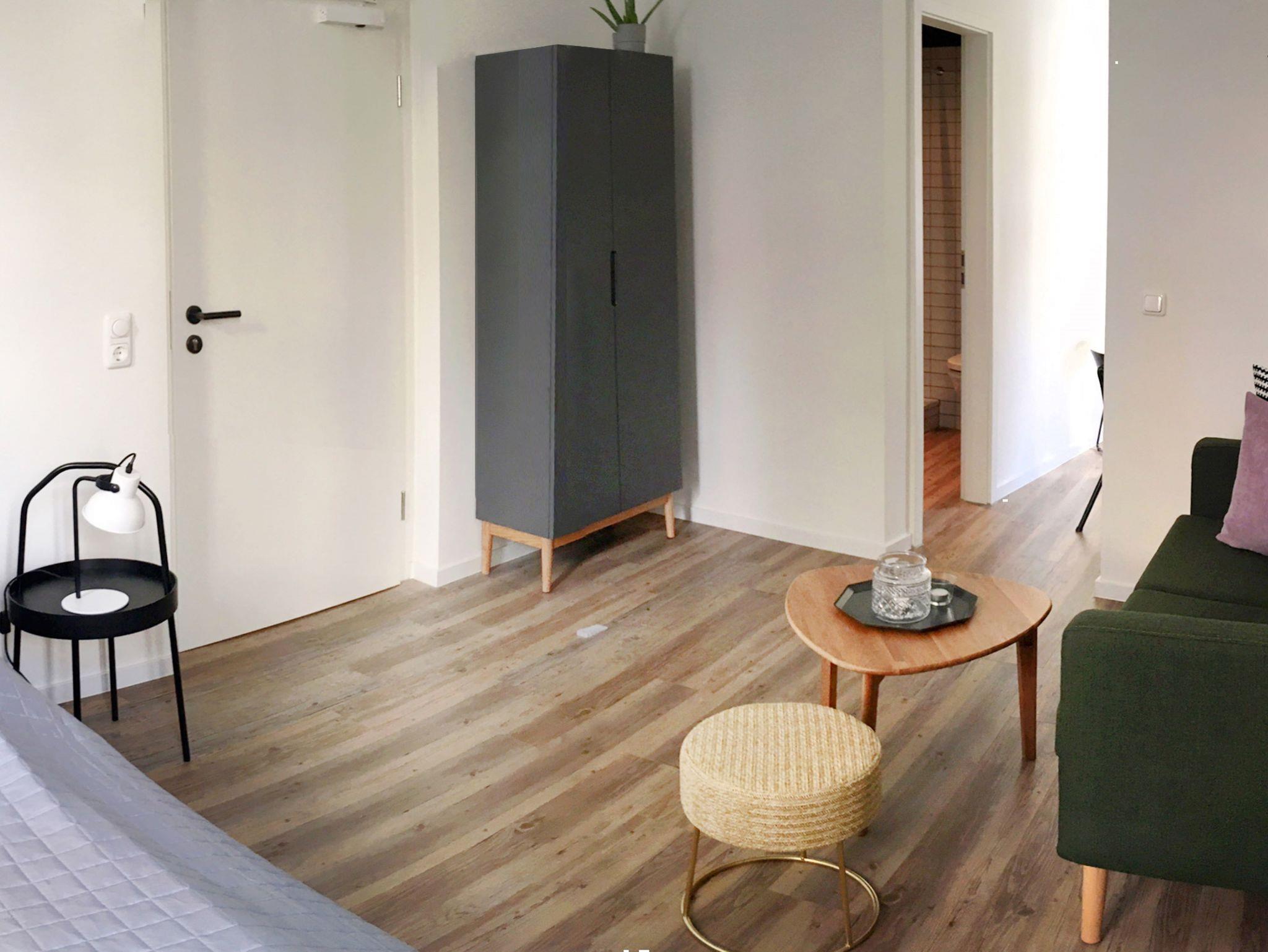 Modernes Studio am Kniepertor in Stralsunds Altstadt, ideal für ruhige Aufenthalte nahe Rathaus und Zentrum.