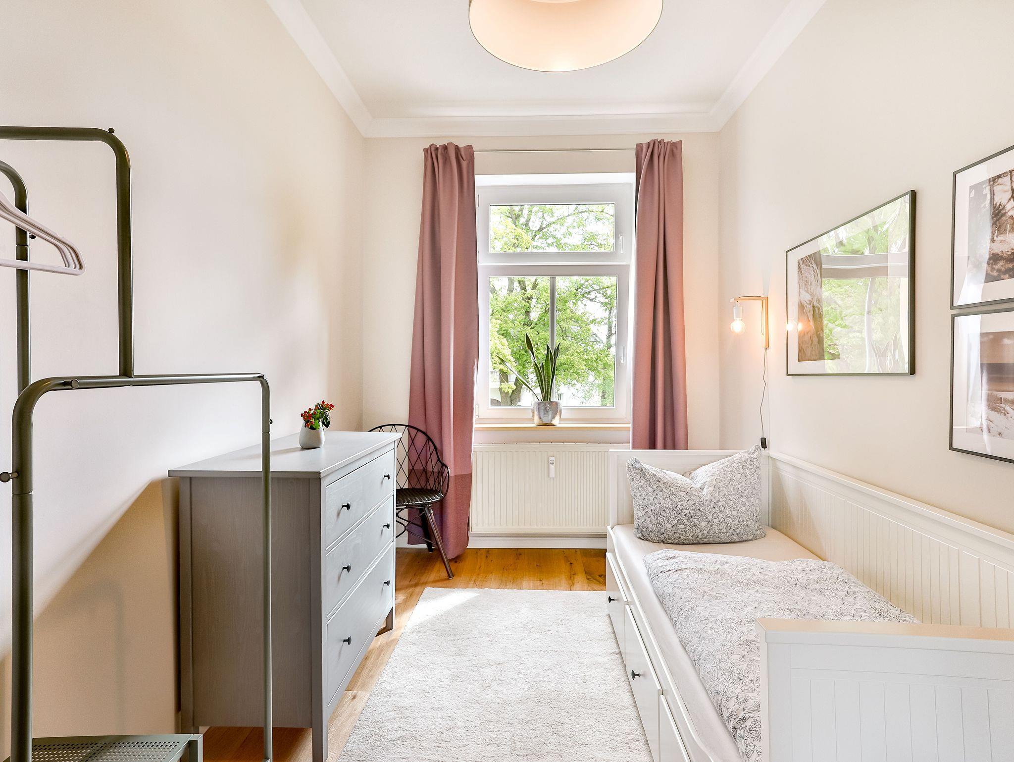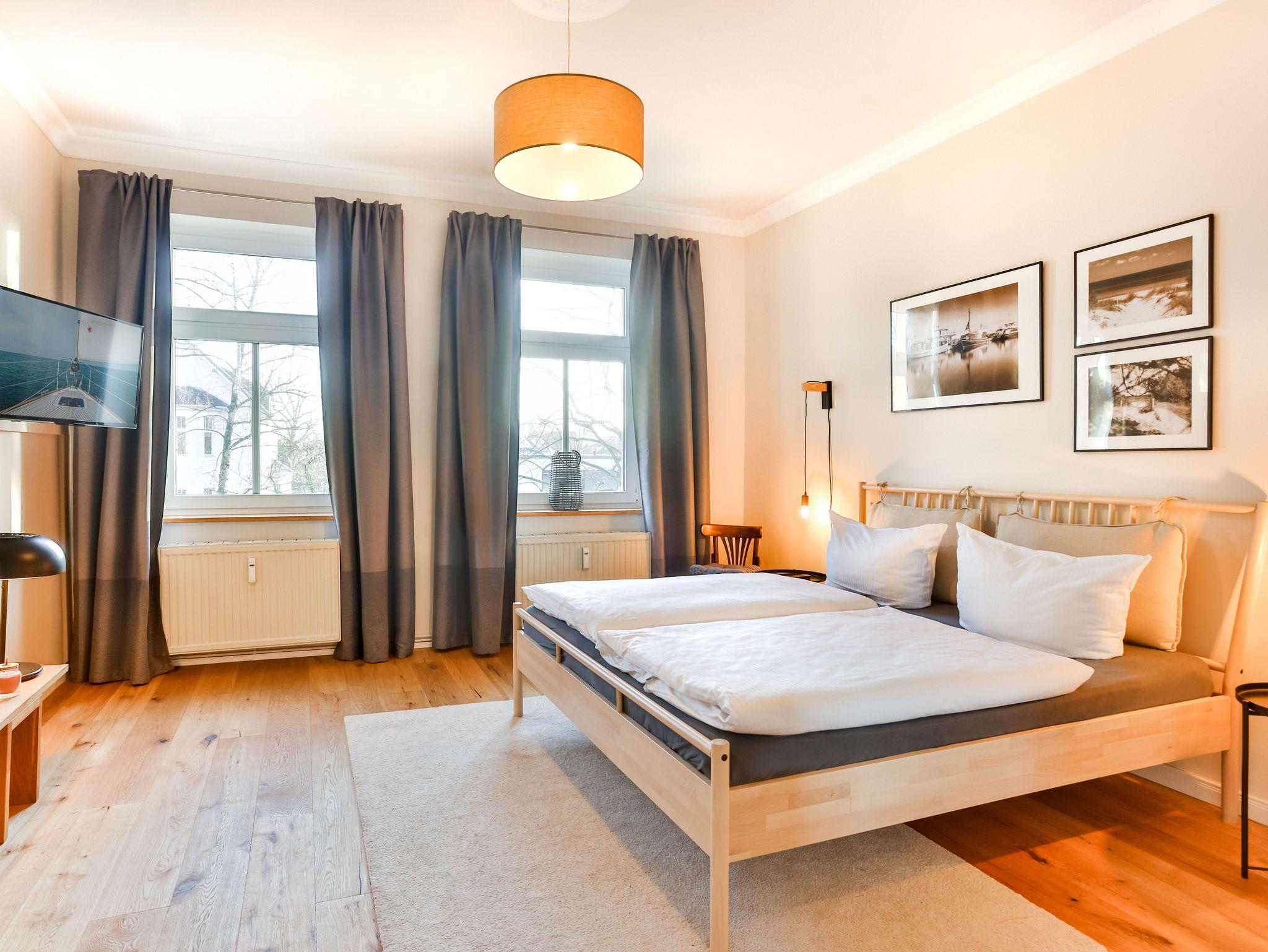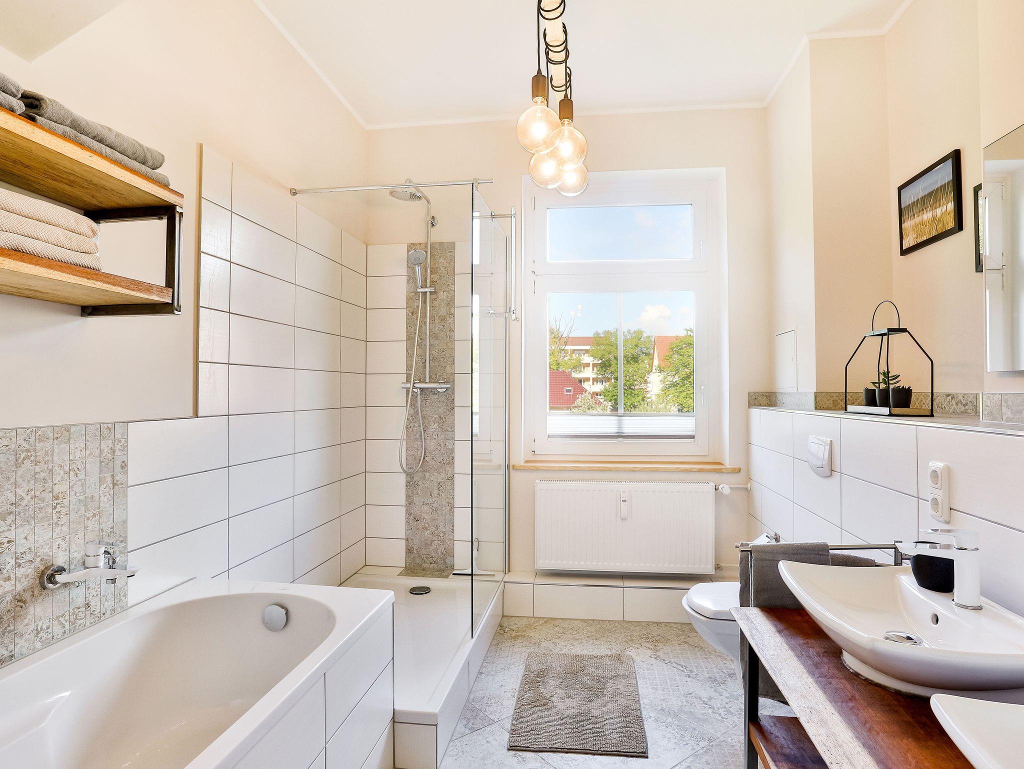 Ruhige Ferienwohnung in Stralsund mit großem Garten und zentraler Lage, ideal für Familien und Gruppen.