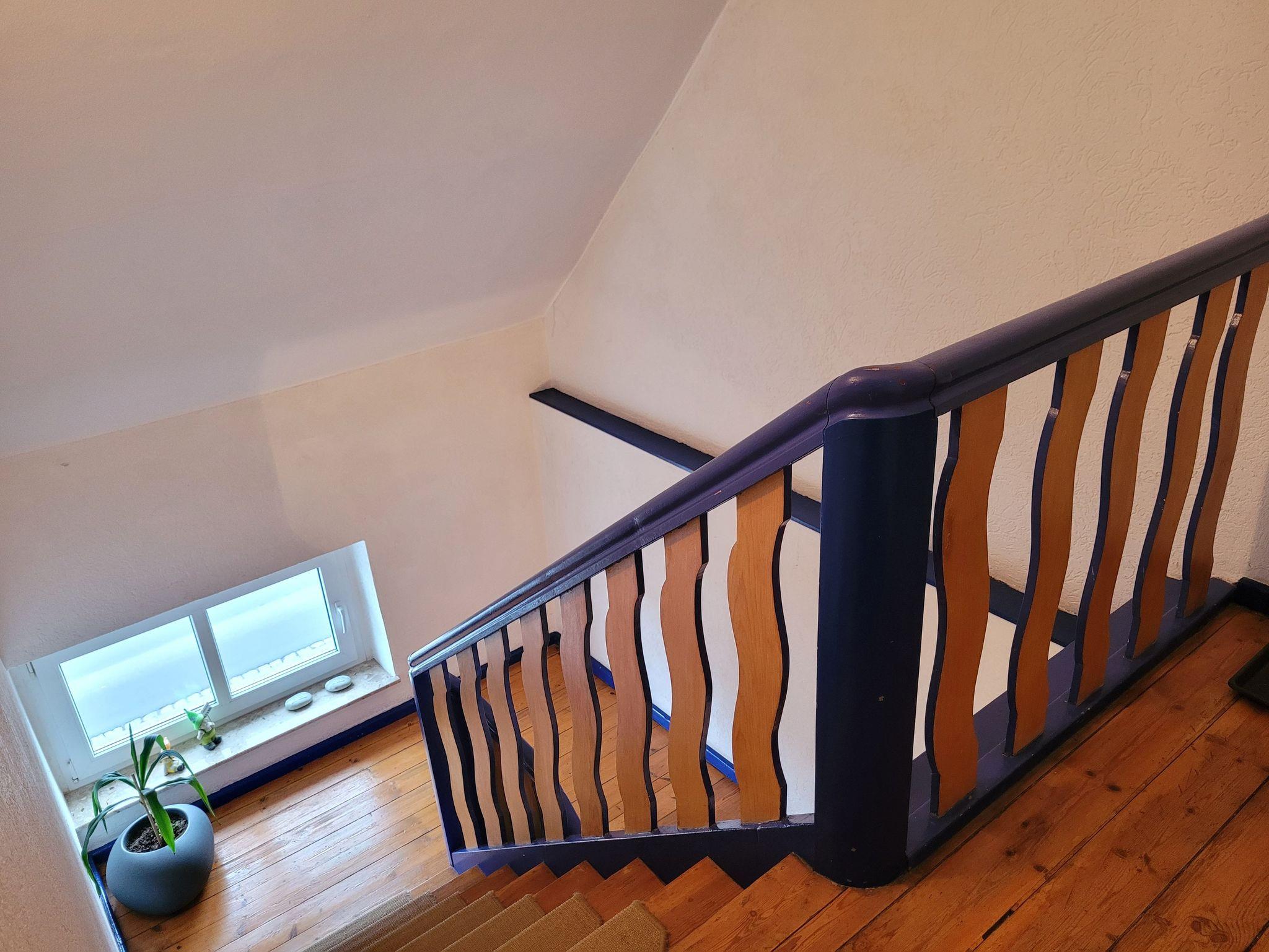 Unsere Ferienwohnung ist 56 qm groß und liegt im Dachgeschoss unseres Hauses. Sie verfügt über einen kombinierten Wohn-/Schlafraum (ausziehbare Couch für 2 Personen) mit Smart-TV, Internet, ein Schlafzimmer mit Doppelbett (1,40 Meter Breite), ein Schlafzimmer mit zwei Einzelbetten, einer offenen Küche mit alltäglichen elektrischen Geräten und einem großen Esstisch, einem Badezimmer mit Dusche und WC. Auf dem Hof besteht die Möglichkeit zu grillen. Dort ist eine gemütliche Chill-Ecke vorhanden.