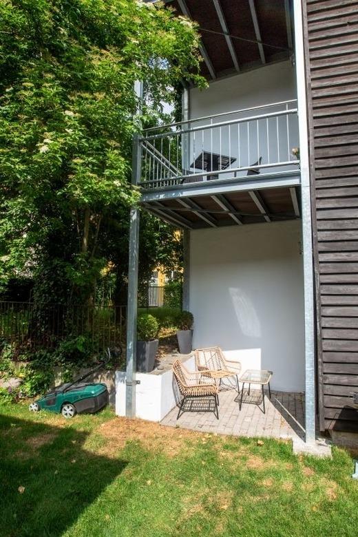 Über den Hausflur im Erdgeschoss gelangen Sie zum ruhigen Innenhof. Dort können Sie den Tag mit einem Glas Wein oder einem kühlen Bier ausklingen lassen.
