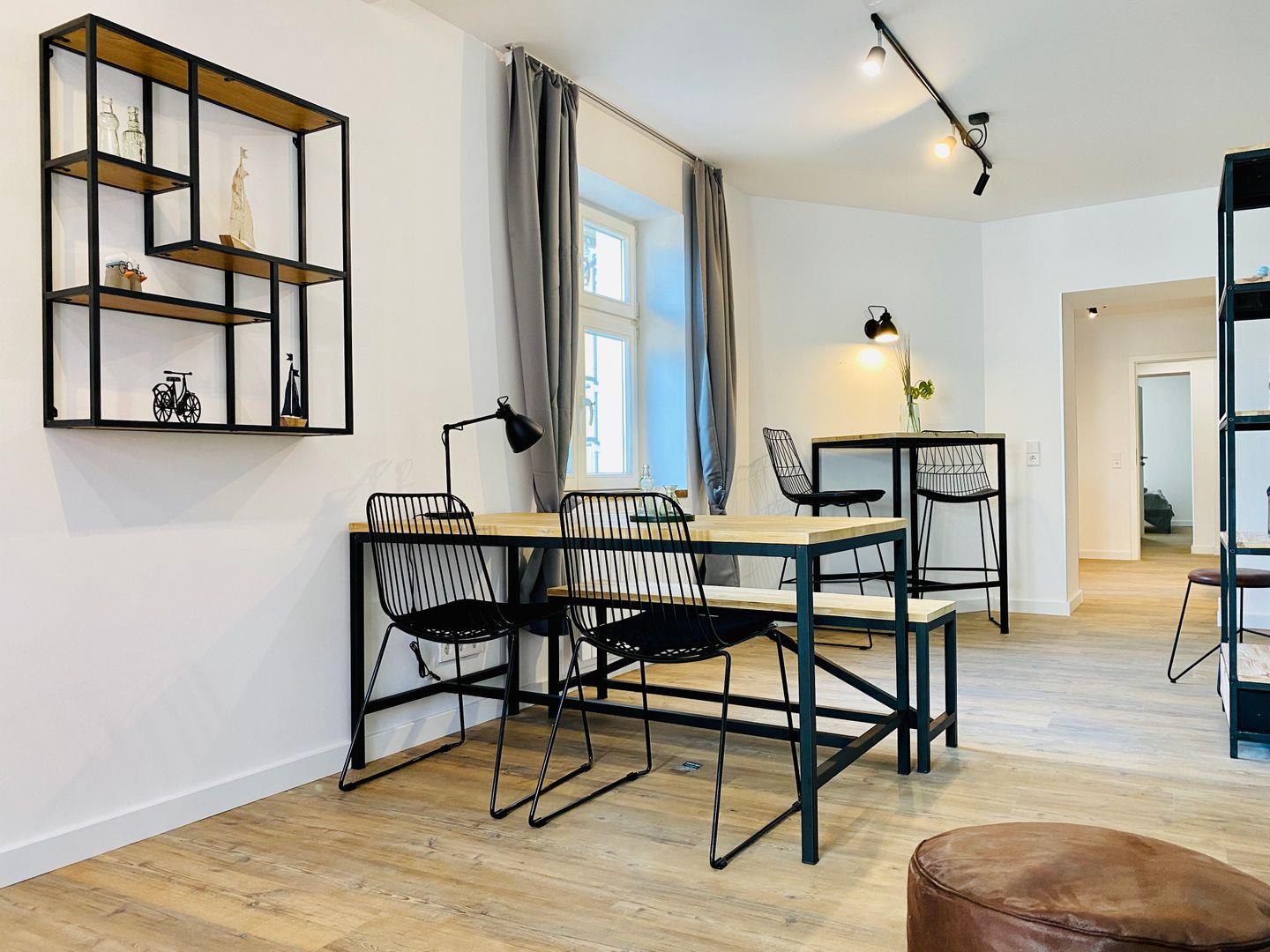 Im 4. Obergeschoss gelegen, bietet das im Industrial Style eingerichtete, neue Appartement einen traumhaften Ausblick in Richtung der berühmten "Gorch Fock", dem Ozeaneum und den rustikalen Speichern der Hansestadt Stralsund.
