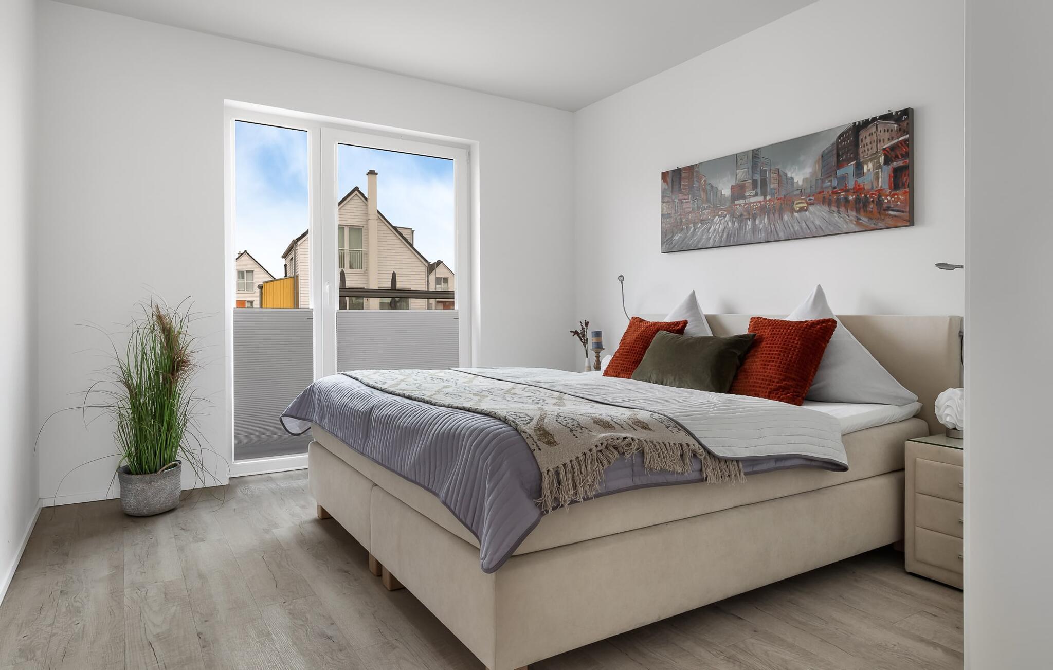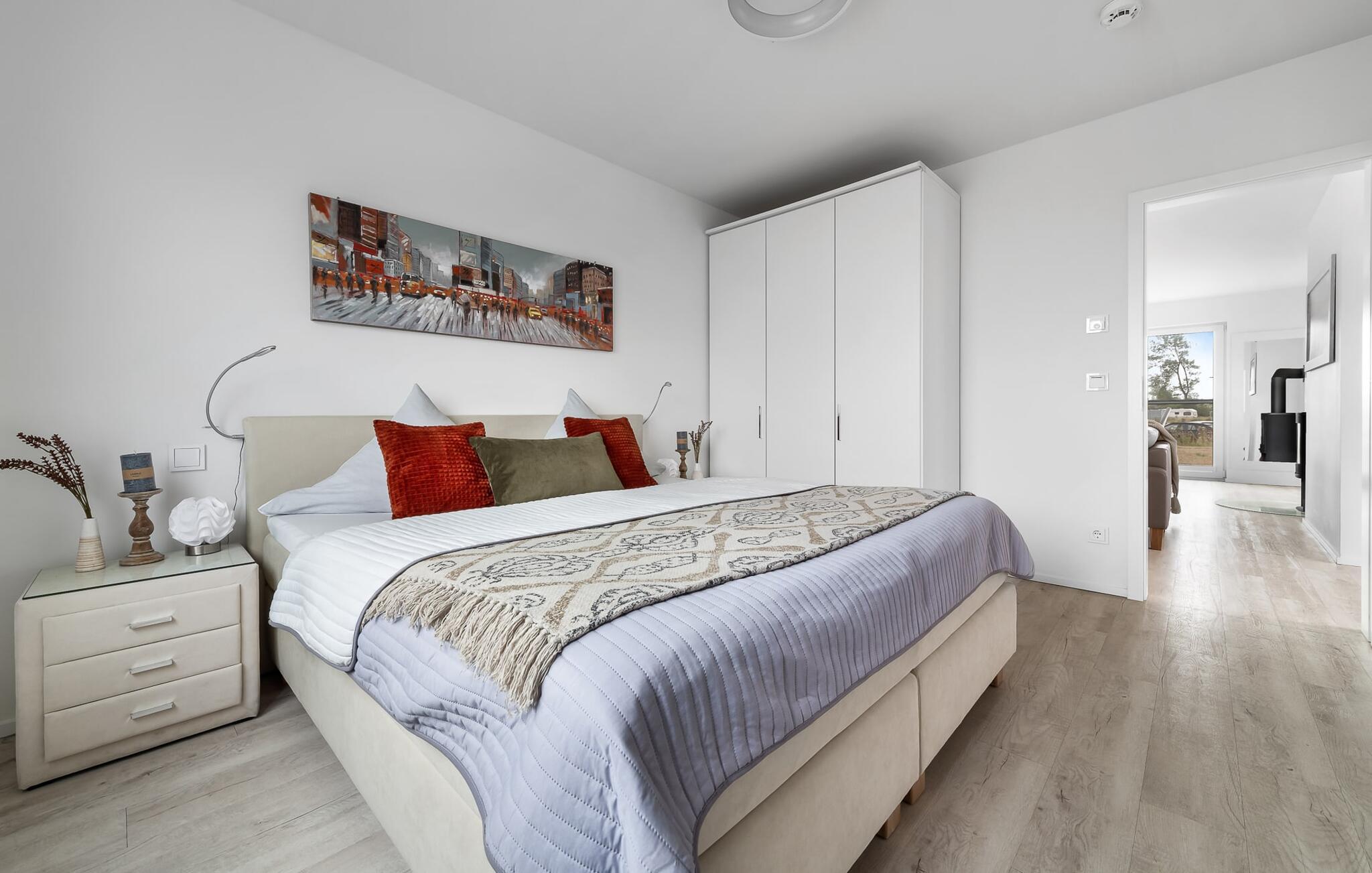 Für die Nachtruhe stehen zwei Schlafzimmer bereit. Beide Schlafzimmer sind mit je einem großen Doppelboxspringbett ausgestattet.