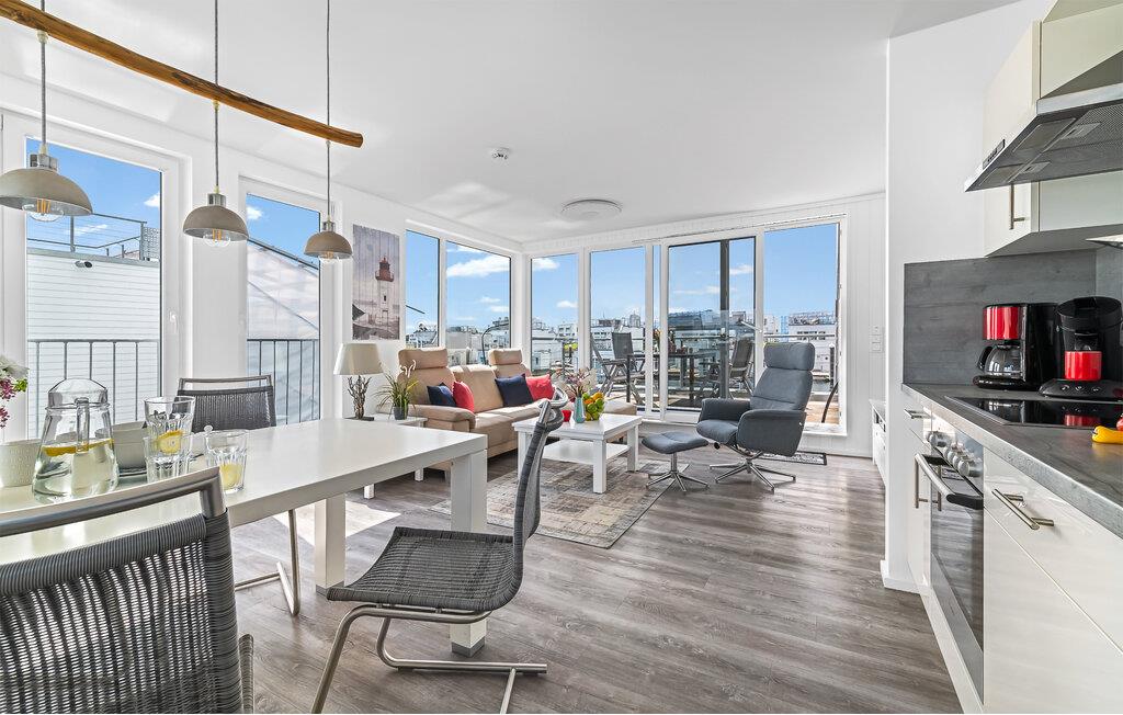 Dieses außergewöhnliche Urlaubserlebnis lädt euch dazu ein, die Langsamkeit des Lebens zu genießen, umgeben von der endlosen Weite des Meeres. Durch bodentiefe Panorama-Fensterfronten erstreckt sich vor euren Augen eine atemberaubende Kulisse, während die Dachterrasse mit 360-Grad-Blick auf Schlei, Ostsee und den Segel- und Sportboothafen spektakuläre Ausblicke verspricht.