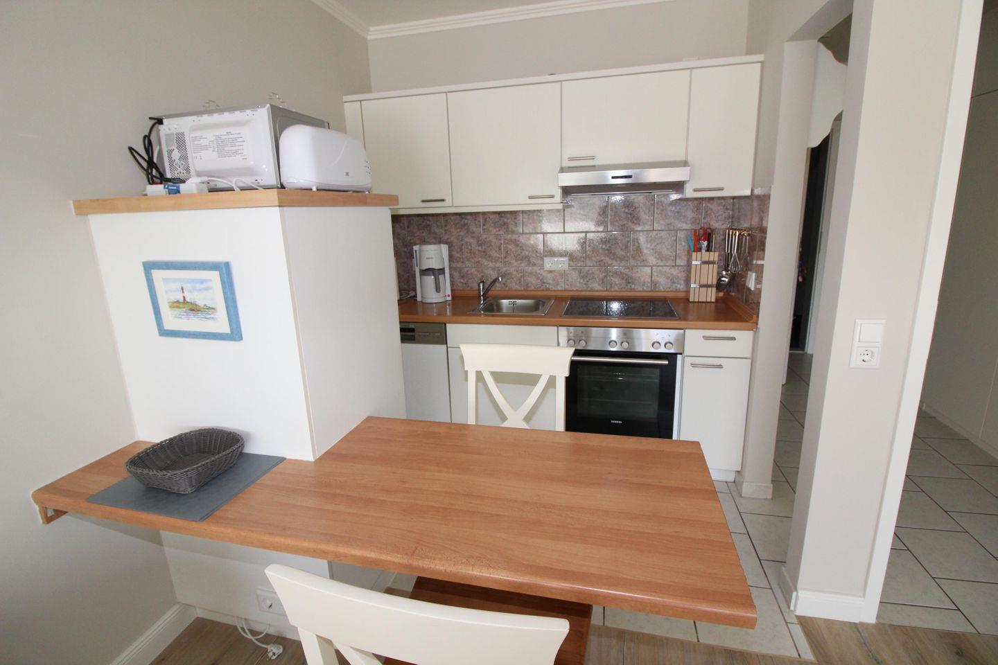 • Küchenzeile: Voll ausgestattet mit Spülmaschine, Kochfeld, Mikrowelle, Backoffen, Kühlschrank mit Gefrierfach