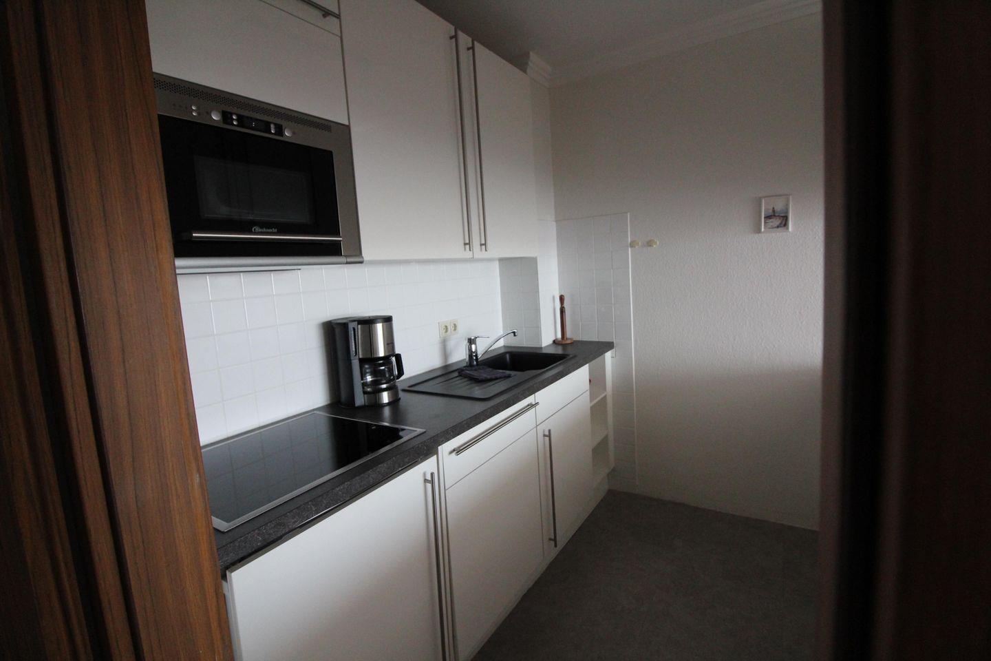 • Küchenzeile: Voll ausgestattet mit Geschirrspüler, Kochfeld, Mikrowelle, Kühlschrank mit Gefrierfach