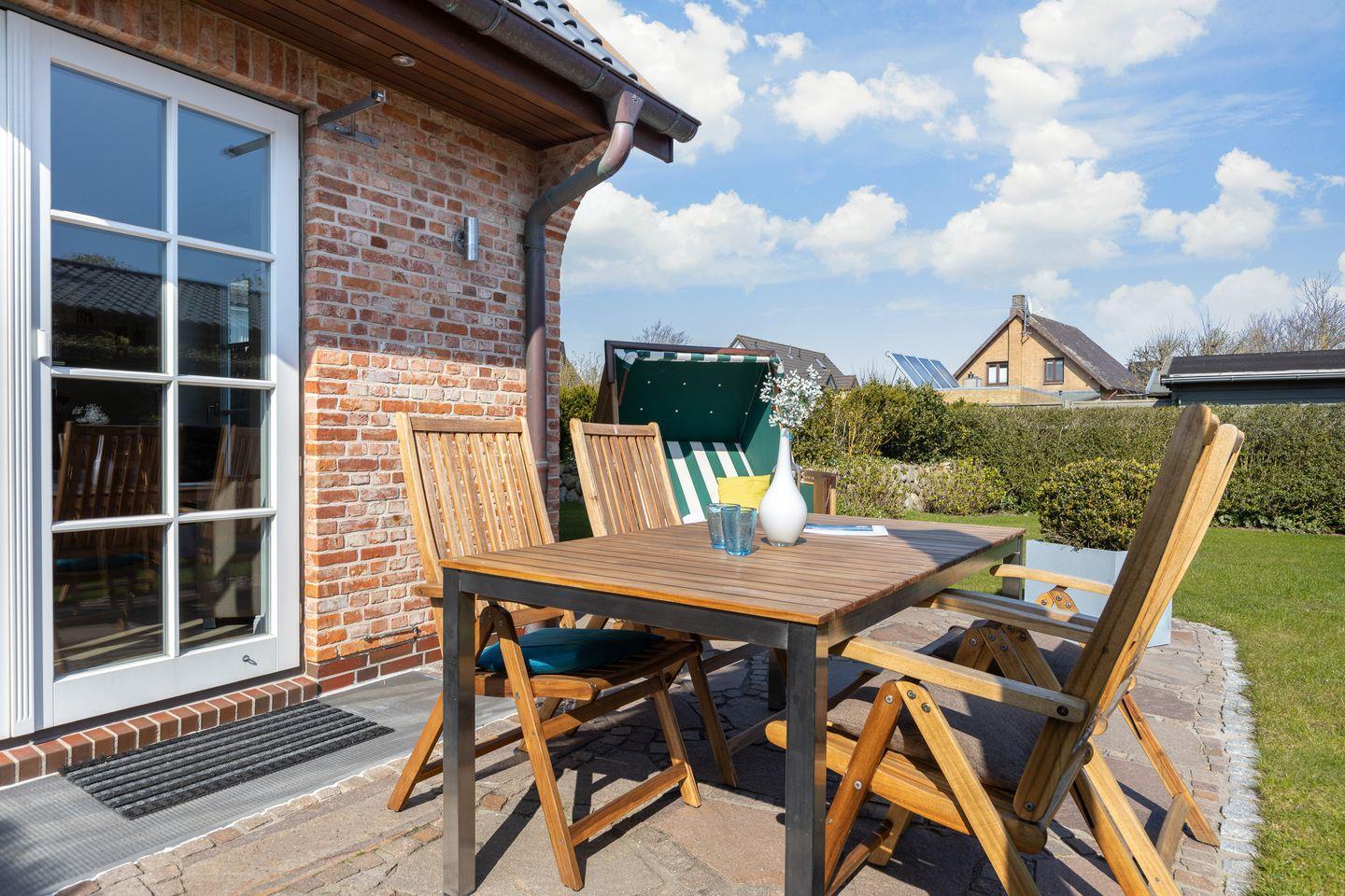 Modernes Ferienhaus Gode Tiet in Westerland mit Terrasse und Strandnähe, ideal für Familien und Freunde.