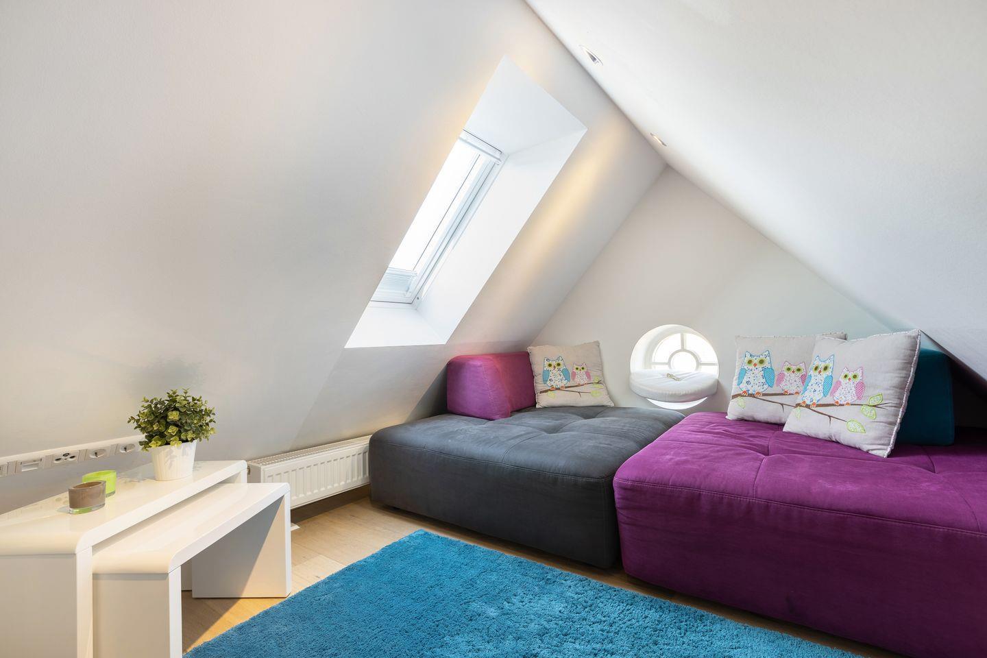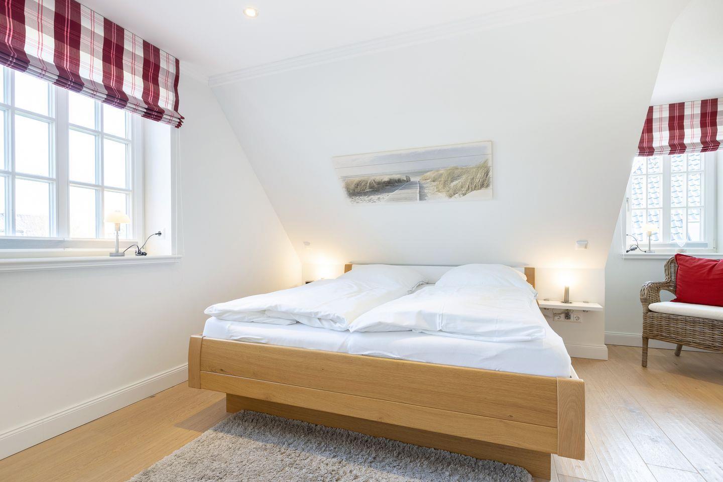 - Schlafzimmer mit Doppelbett und Fernseher, von dort führt eine Treppe in den Spitzboden in die kuschelige Lese-Ecke - ideal für Kinder