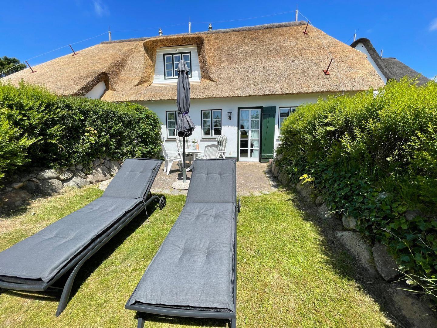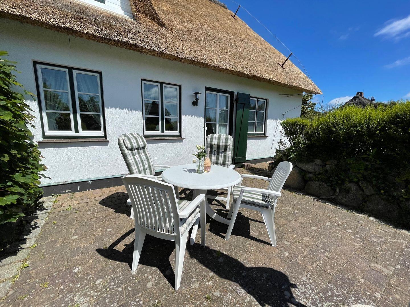 Gemütliche Ferienwohnung mit Reetdach und Terrasse in Keitum, 500 m vom Meer und idyllischen Sehenswürdigkeiten entfernt.