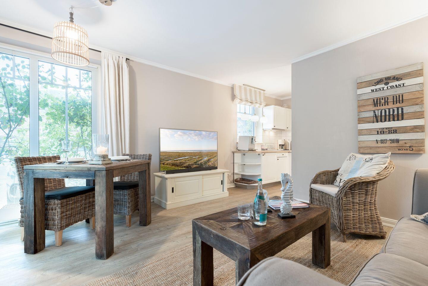 Charmante Ferienwohnung Mer-du-Nord auf Sylt mit Terrasse, WLAN und modernem Riviera-Landhausstil.