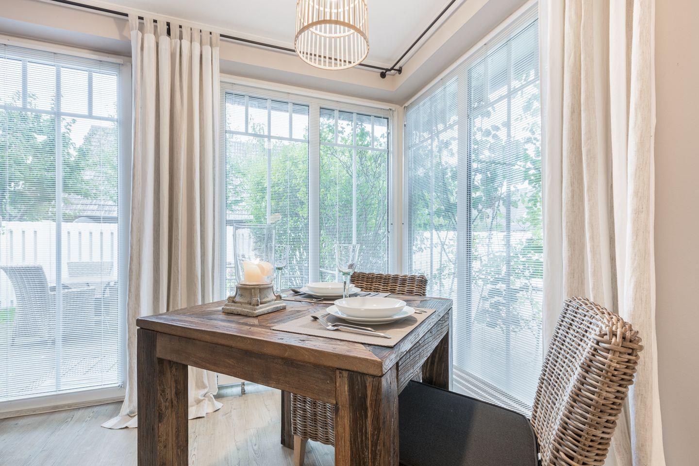 Natürliche Farben, hochwertige Möbel, ein edler Designbelag in Holzoptik, sowie viele liebevoll ausgesuchte