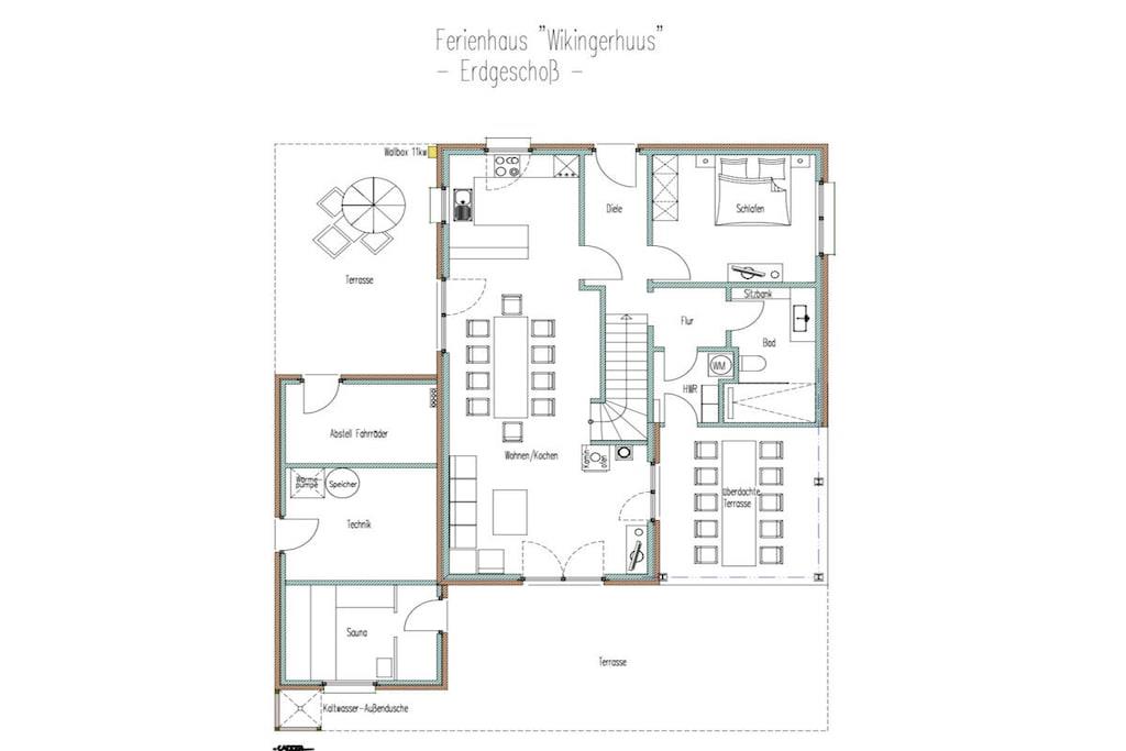 Parterre: (Wohn/Esszimmer(, Kochnische, TV, Esstisch, Kaminofen, Kochplatte, Wasserkocher, Kaffeemaschine, Backofen, Mikrowelle, Spülmaschine, Kühlschrank, Tiefkühlschrank, Heizung, Hochstuhl), Schlafzimmer(, , Doppelbett, Doppelbett, TV, Heizung), Badezimmer(, Toilette, Badewanne, Dusche, Dusche, Waschbecken, Heizung, Föhn), Ruheraum(Sauna, outdoor shower)) In der 1. Etage: (Schlafzimmer(, , Doppelbett, TV, Babybett, Heizung), Schlafzimmer(, , Doppelbett, Doppelbett, TV, Heizung), Schlafzimmer(, , Etagenbett, Etagenbett, Heizung), Badezimmer(, Toilette, Badewanne, Badewanne, Dusche, Dusche, Waschbecken, Heizung)) Dachgeschoss: (Schlafzimmer(, , Schlafcouch 1 Pers., Schlafcouch 1 Pers., Heizung)) , Internet, Internet, Waschmaschine, Terrasse(Gartenmöbel), Garten(Grill, Sandkasten), Parkplatz, Trockenschrank