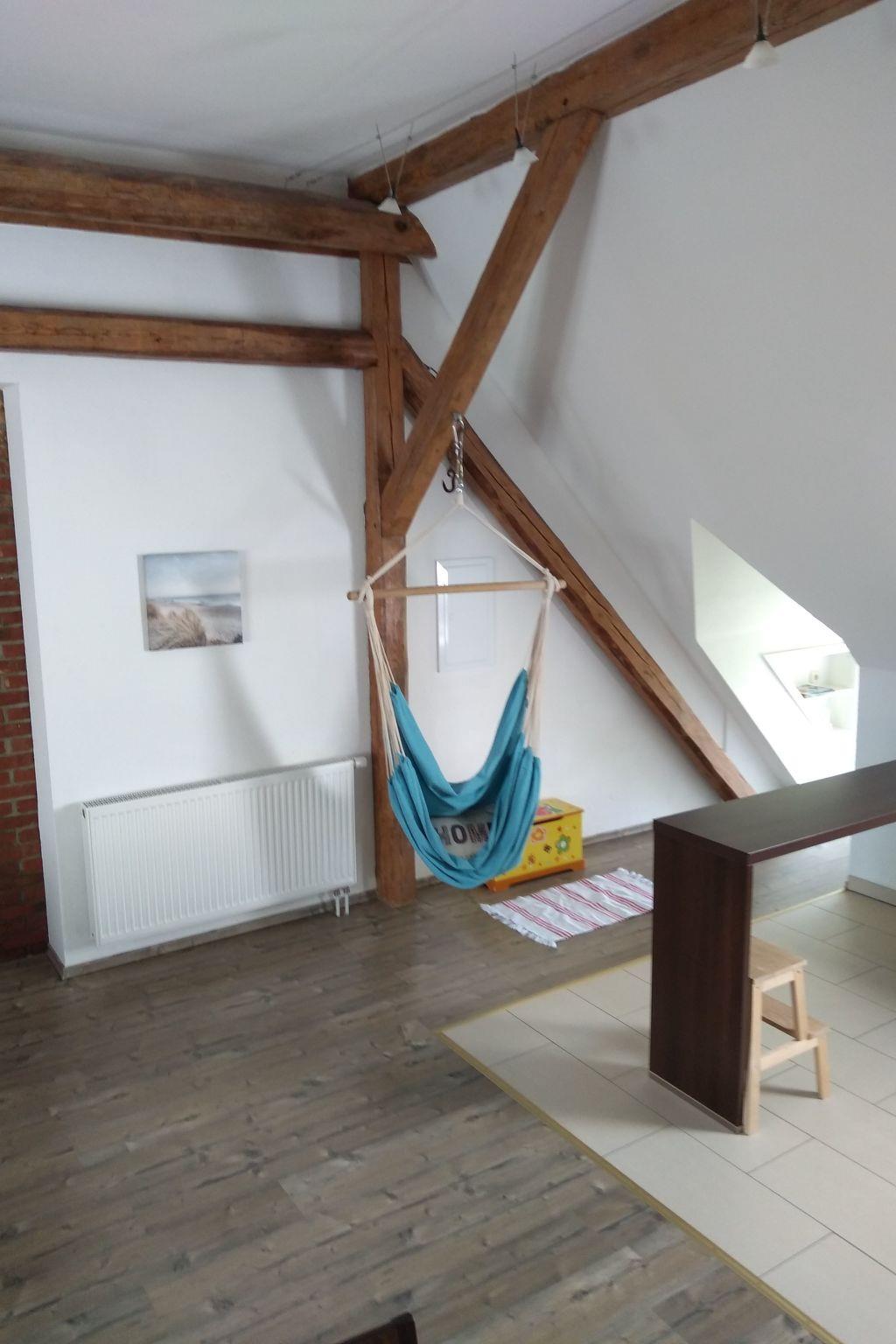 Moderne Dachgeschosswohnung mit 3 Schlafzimmern, Spielscheune und Garten in ruhiger Alleinlage nahe dem Meer.